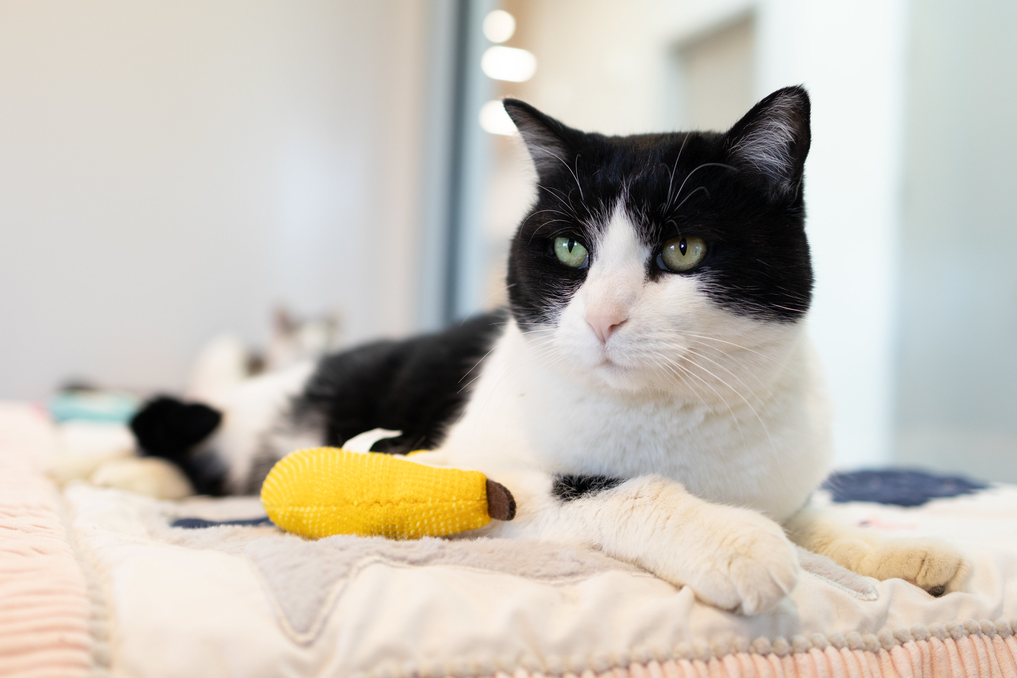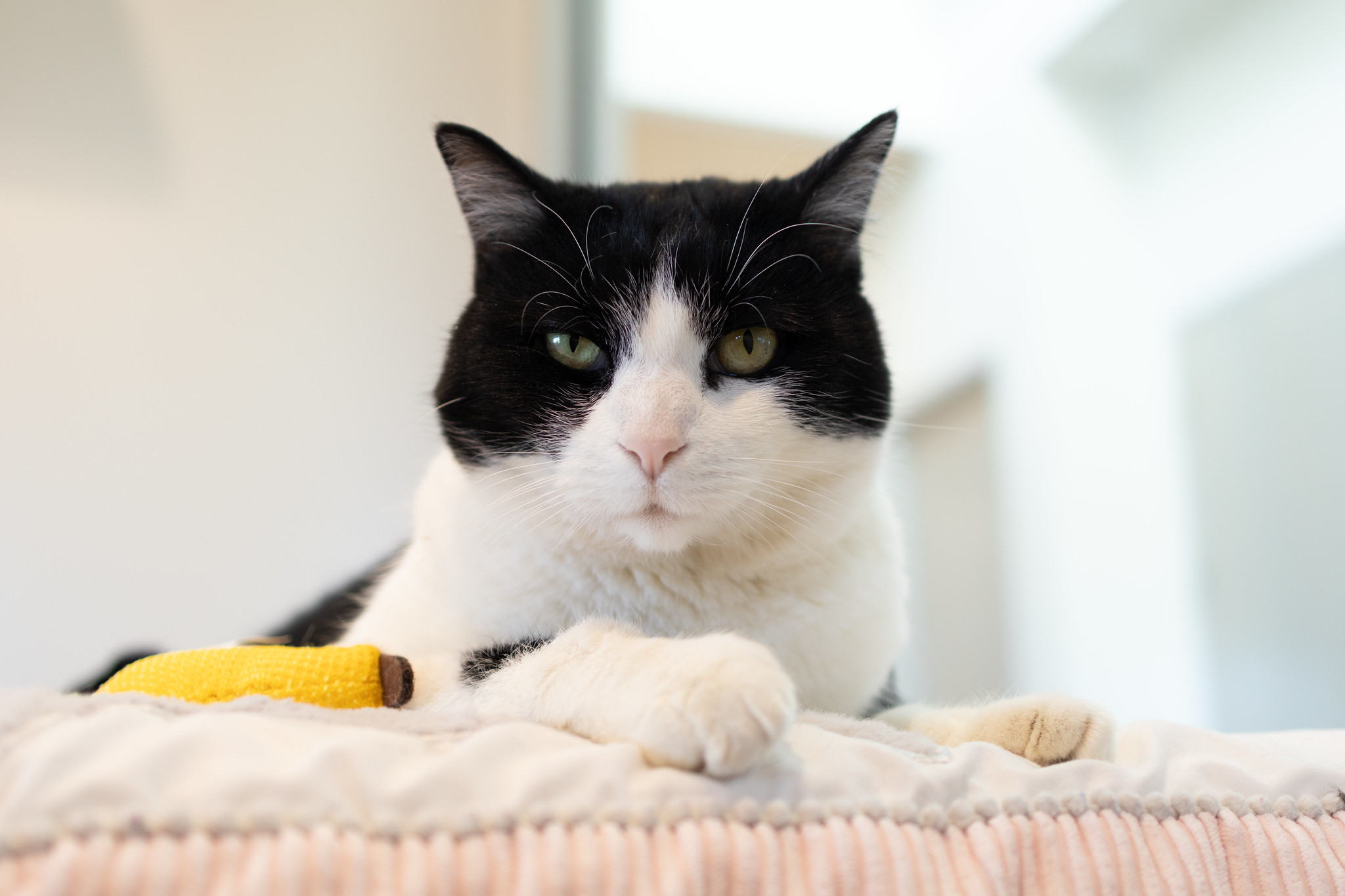 When Cassandra is in the mood for affection, she’s quick to greet you when you enter the room and politely beg for attention. After a thorough sniff inspection of your hand, she’ll happily accept pets, especially enjoying head rubs and scratches along the sides of her head and neck. During these moments, Cassandra turns into a total purr machine, soaking up all the love.