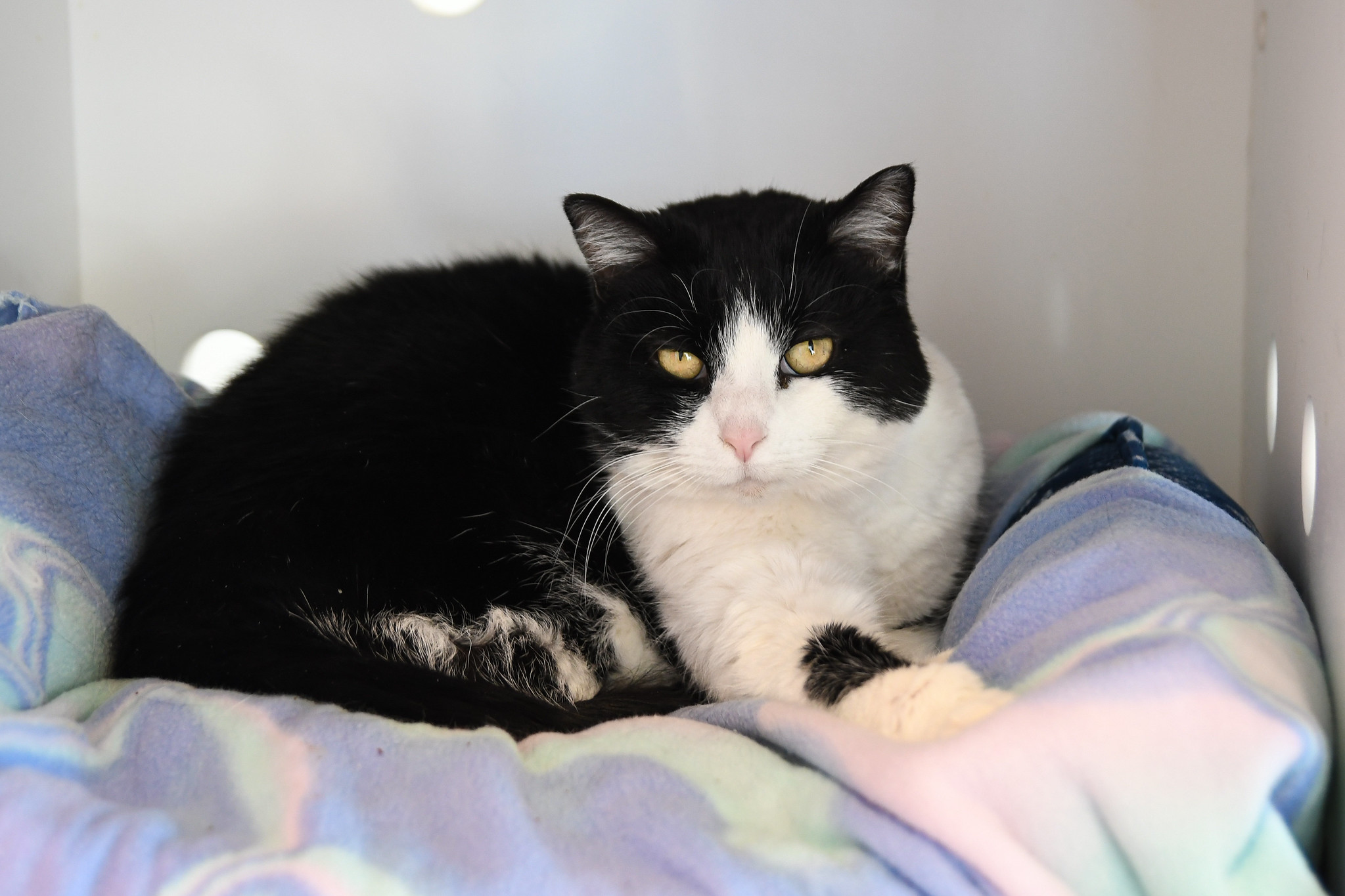 While Cassandra is incredibly sweet, she can become overstimulated at times. She will thrive in a home with someone who understands and respects her boundaries and avoids forcing interactions when she needs space. She’s also not a fan of other felines and would prefer to be the only cat in the home.