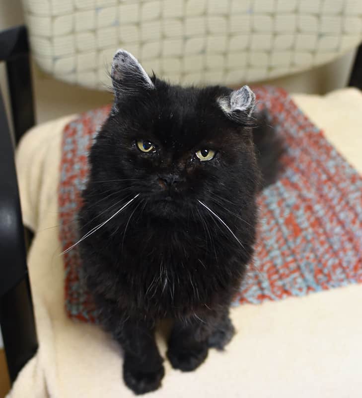 Jupiter and her best friend, Blueberry, came to Tabby’s Place from a hoarding situation in North Carolina. Out of the 90 cats in Jupiter’s previous home, she formed a special bond with Blueberry that continues to this day; you can find them orbiting around one another in our Director of Operations’ office. We know that Jupiter will glow brighter if she finds a forever home with her dear friend. Regardless, Jupiter is a sweetheart who loves other cats and humans alike.