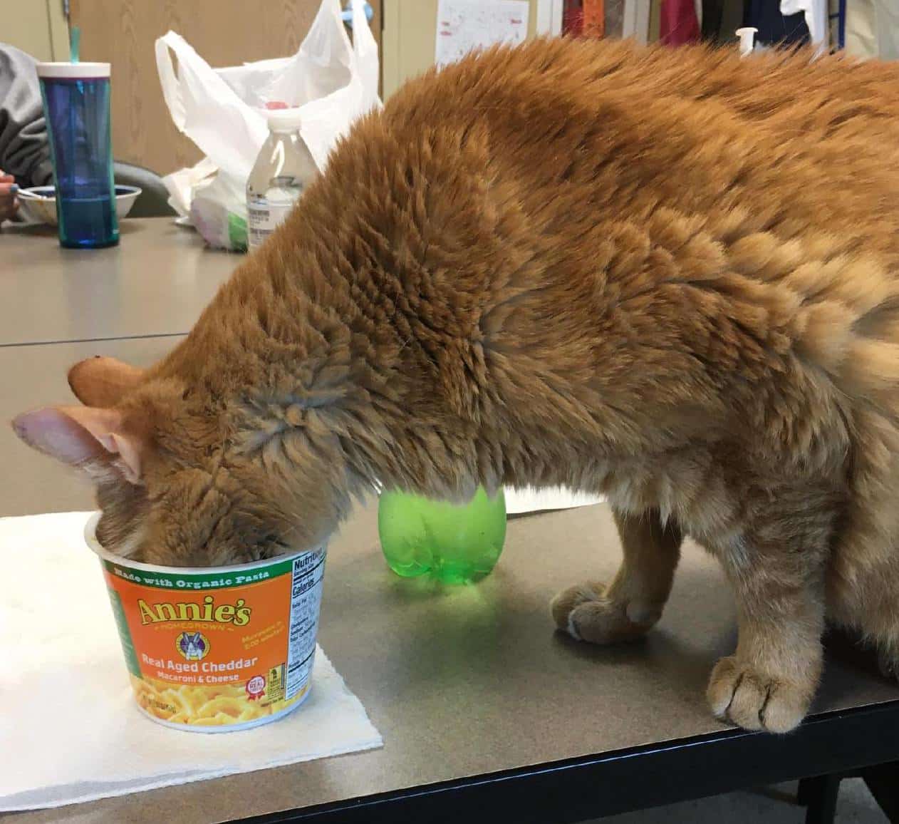 Simon sports a beautiful orange coat with sparkling eyes that can peer right into your heart. He also has an obsessive hankering for cheese—particularly the saucy or powdery varieties found on macaroni or snack chips. As the newest resident of the Tabby’s Place Lounge (where most of our diabetic cats reside), Simon gets to join his human staff and volunteers for lunch and snacks. We have learned to tend our food as no one wants cat hair on their Cheetos.