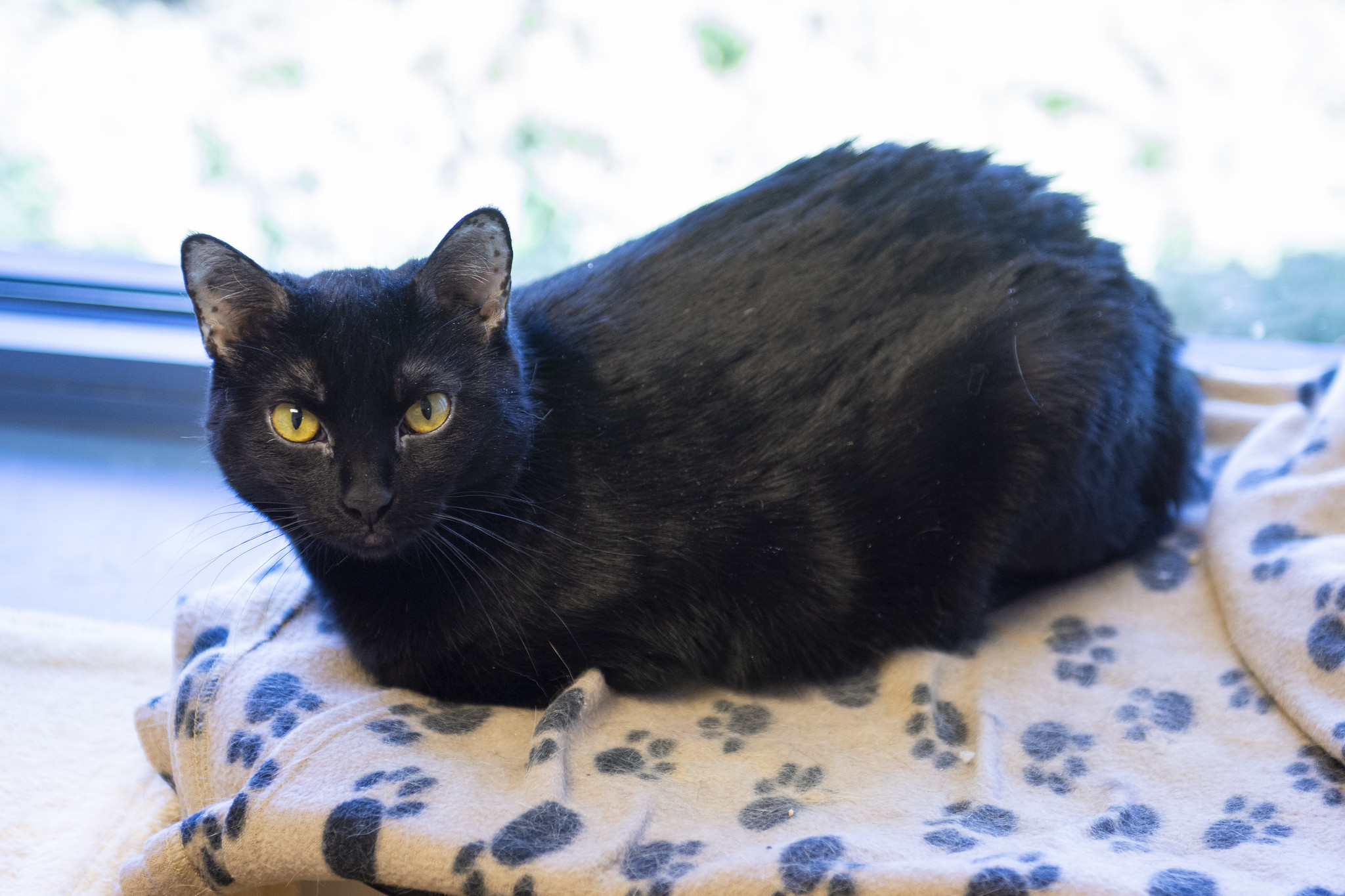 Dressed up in a sleek black coat and sleek “eyeliner,” Lizzy is one house panther who’s dressed for a formal. From the shadows of her favorite tunnel, she will elegantly emerge, staring up at guests with her golden eyes and dazzling them with her shinny coat. While black cats are quite common, Lizzy knows how to make herself stand out in the crowd.