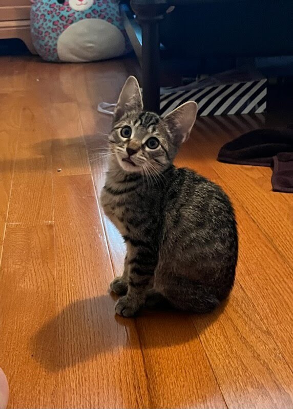Our little ones have been fully vetted. As you’d expect, they love to play, and they race around like maniacs until they suddenly fall asleep. Nap time lasts just a short while, then play resumes. While adopting more than one kitten isn’t mandatory, it’s awfully nice for these young’uns to have someone their age to play with.