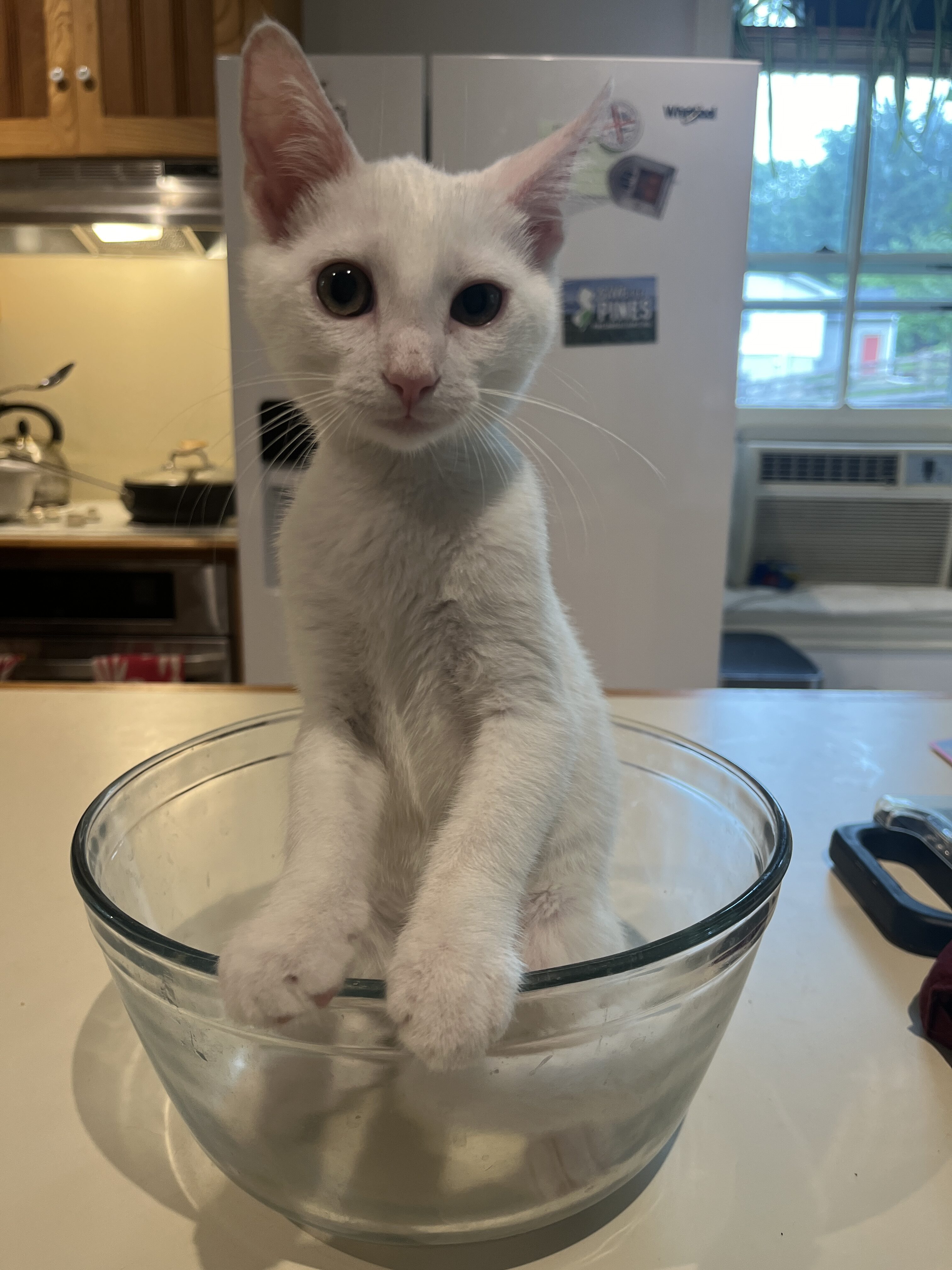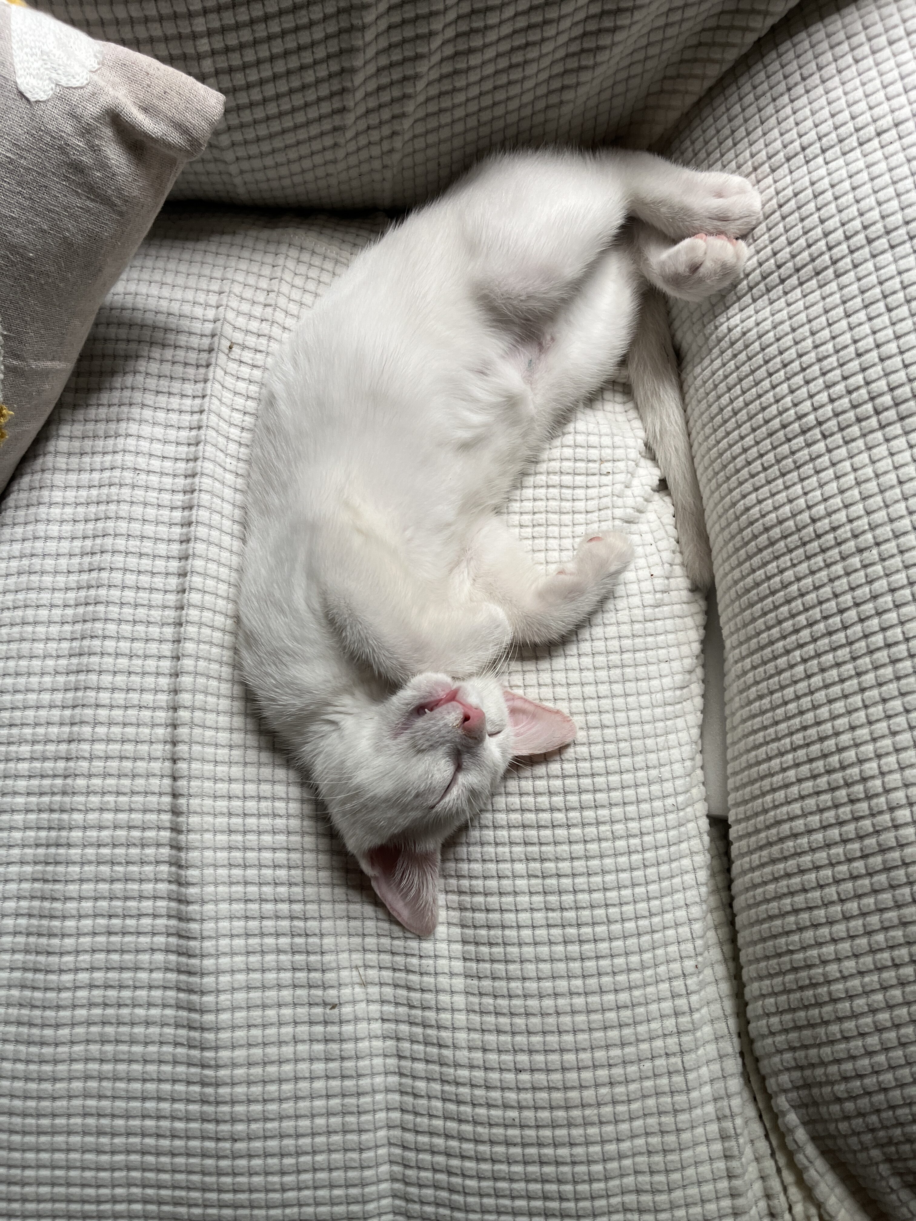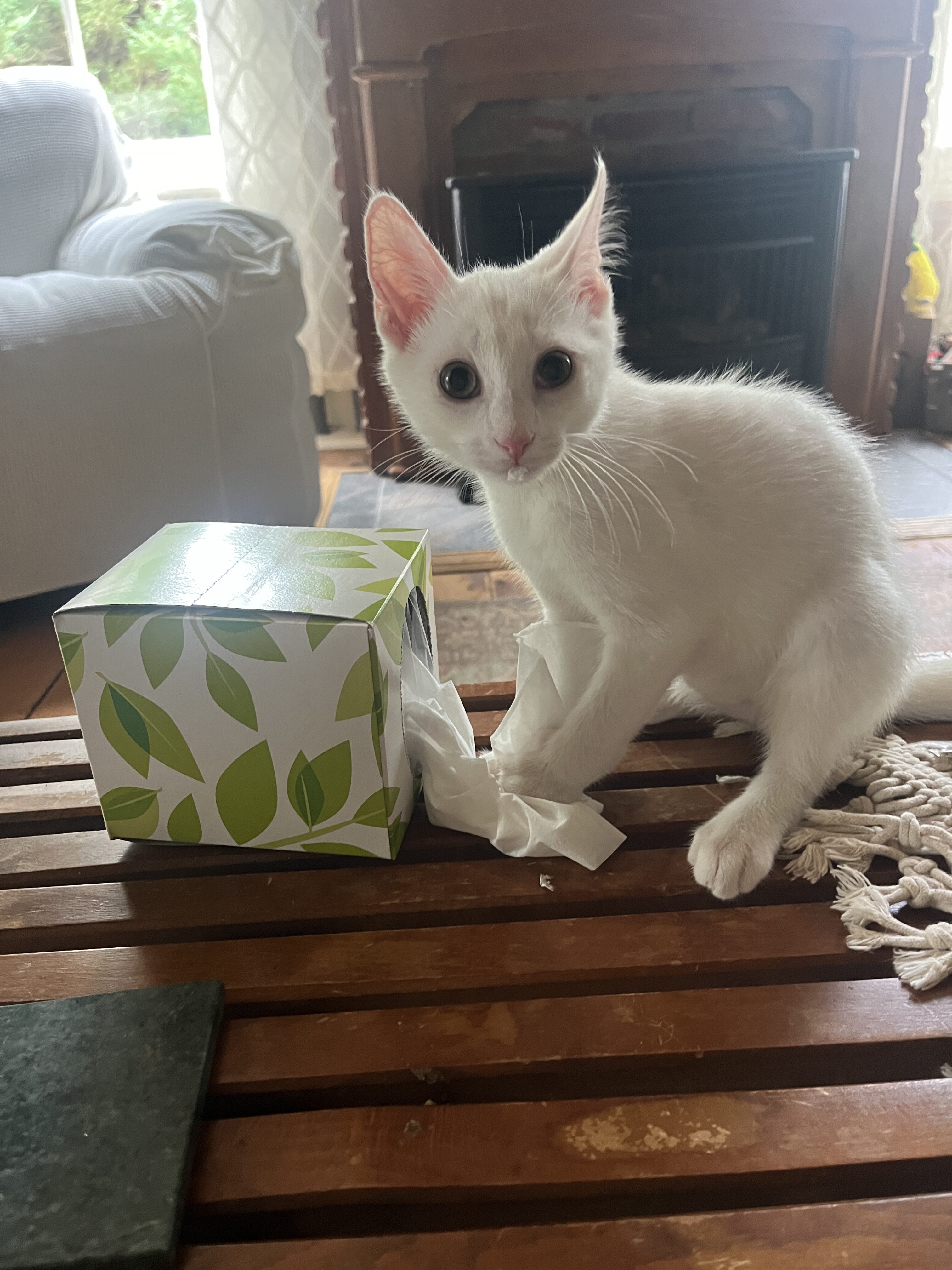 Our little ones have been fully vetted. As you’d expect, they love to play, and they race around like maniacs until they suddenly fall asleep. Nap time lasts just a short while, then play resumes. While adopting more than one kitten isn’t mandatory, it’s awfully nice for these young’uns to have someone their age to play with.
