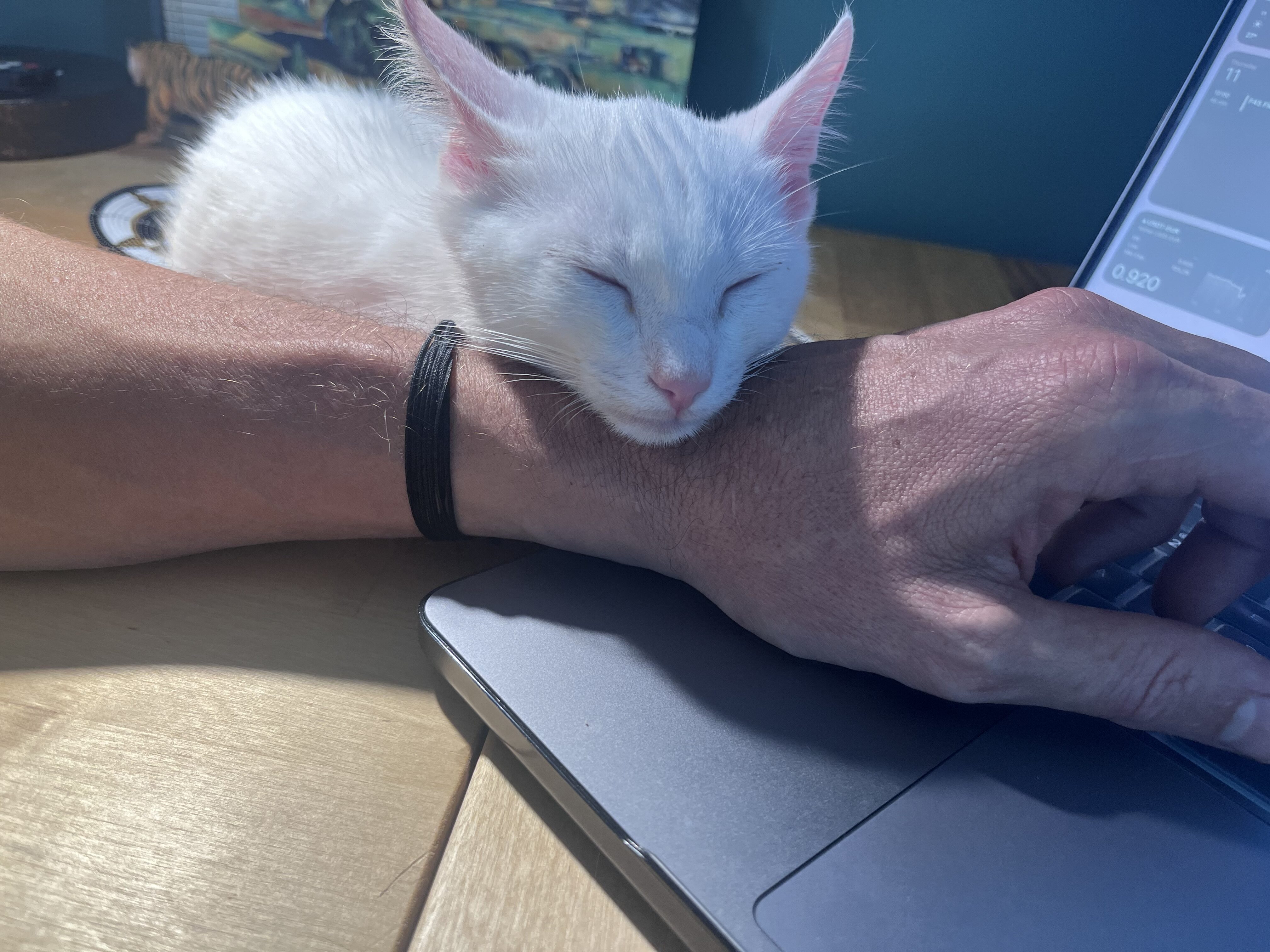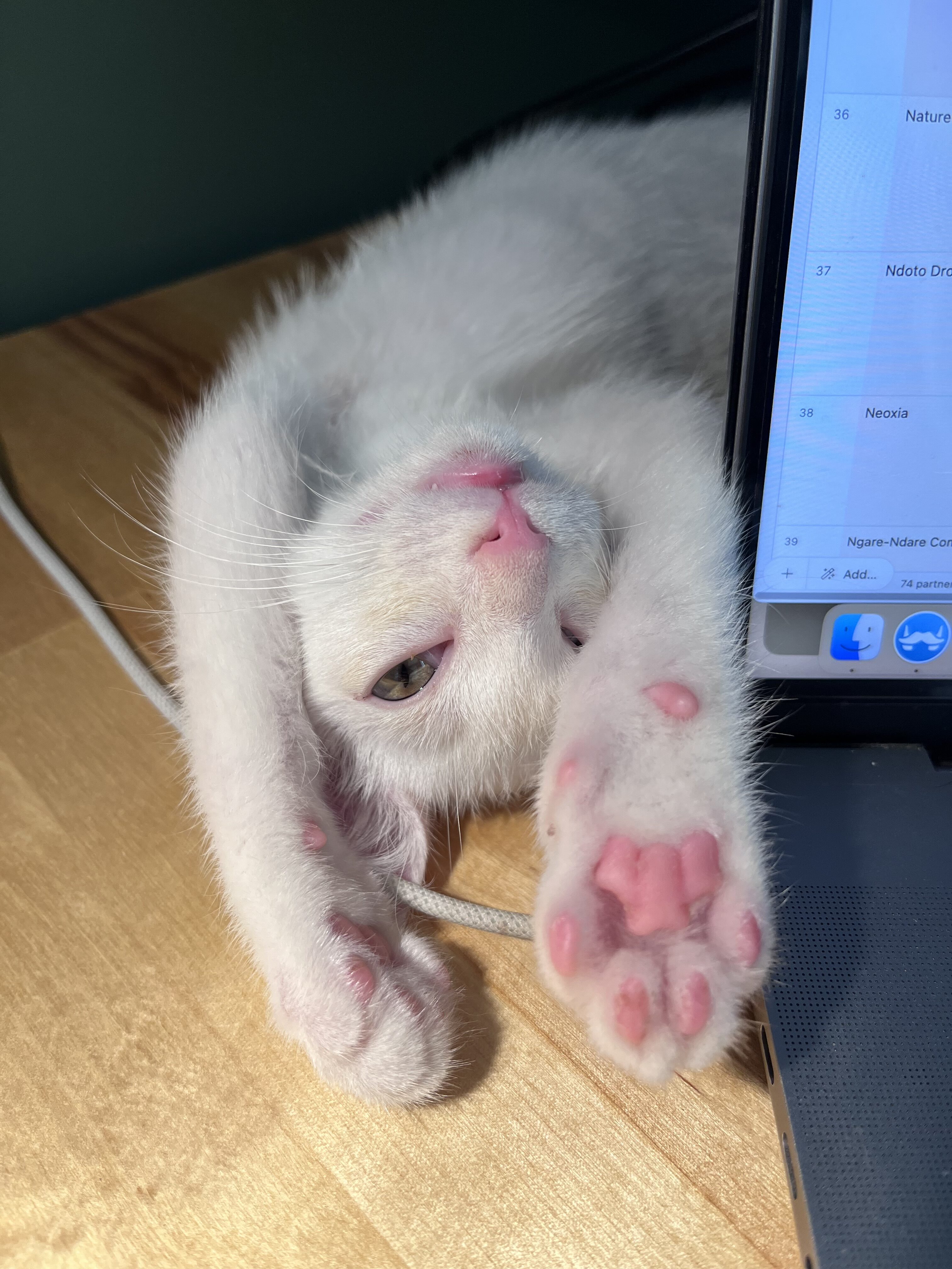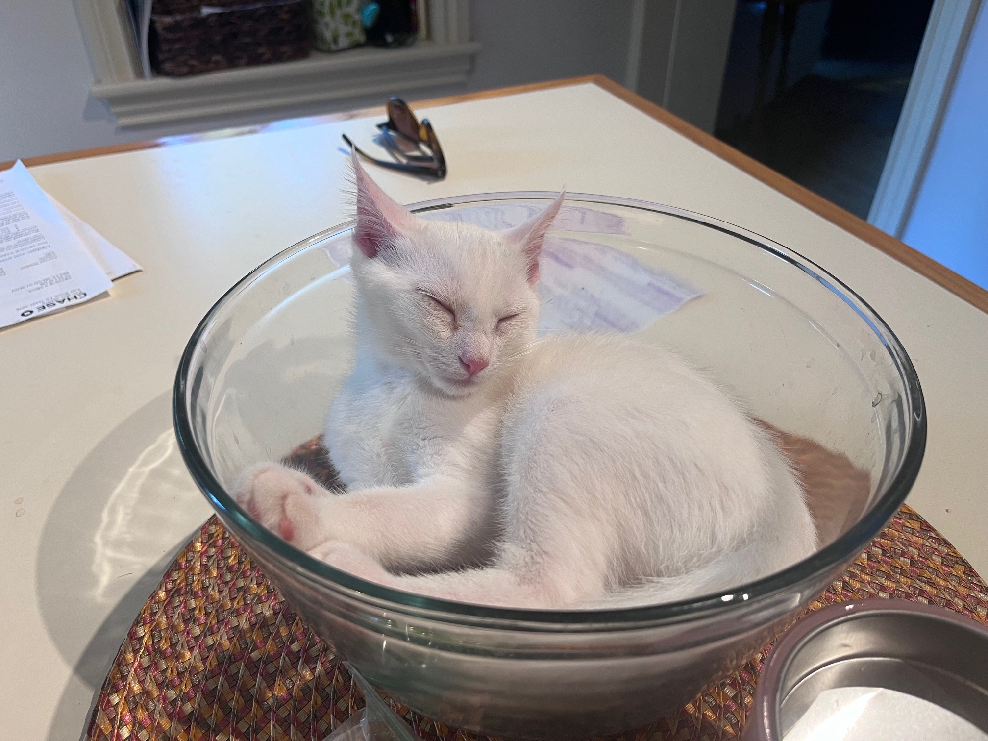 Our little ones have been fully vetted. As you’d expect, they love to play, and they race around like maniacs until they suddenly fall asleep. Nap time lasts just a short while, then play resumes. While adopting more than one kitten isn’t mandatory, it’s awfully nice for these young’uns to have someone their age to play with.