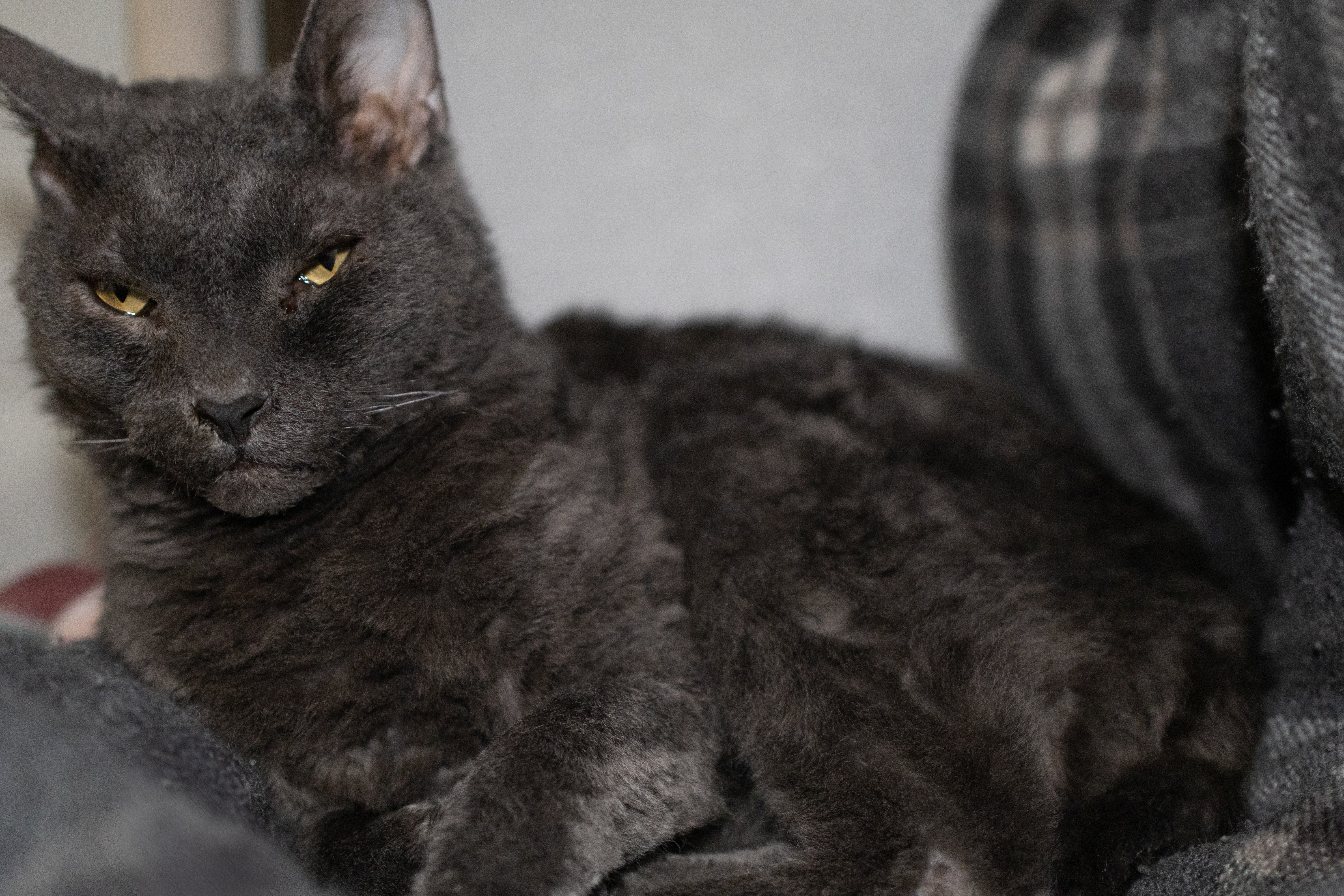 Cobalt the cat certainly has many of the same characteristics as his namesake mineral. With his glossy coat, silvery sheen and hardened exterior, our Cobalt is a bit of a tough cookie. Cobalt came to us from a large colony in which he had little interaction with people. Yes, he may look a bit gruff and grumpy, but he’s no sourpuss – just a timid, reserved fellow who likes taking his time getting to know you. With Cobalt, slow and steady wins the race… and his heart. Have a little patience, and Cobalt will blossom into a kindhearted, affectionate feline with a heartful adoration for chin rubs and butt scratches.