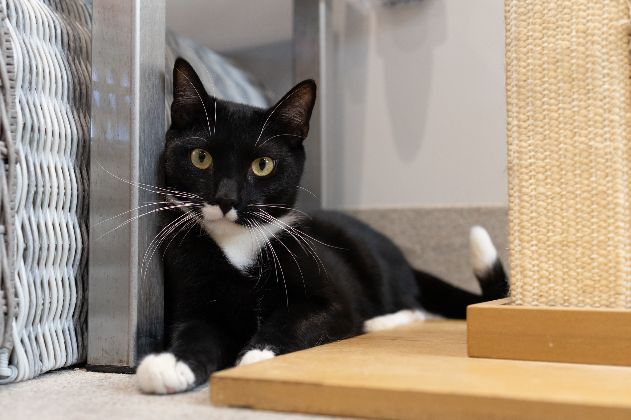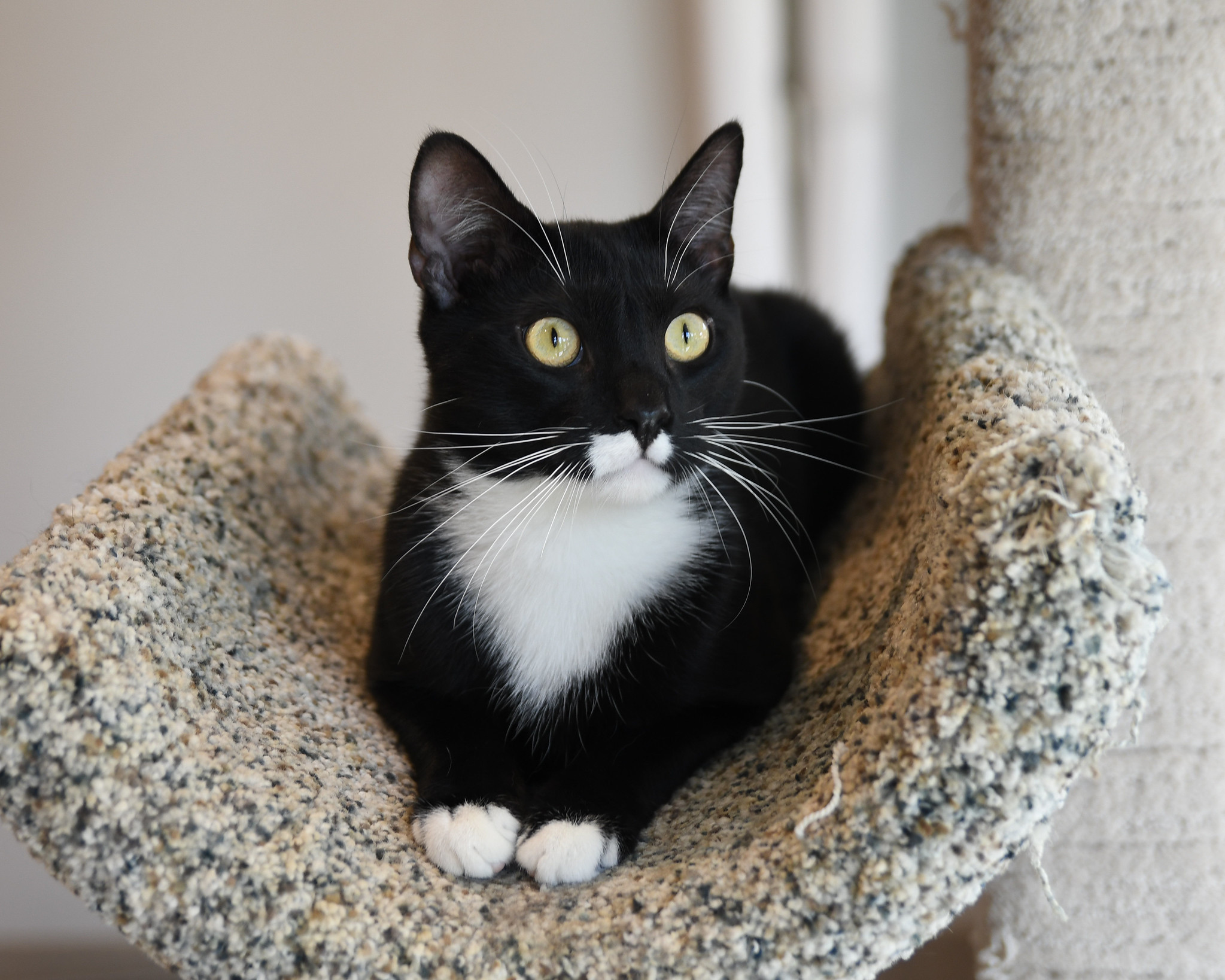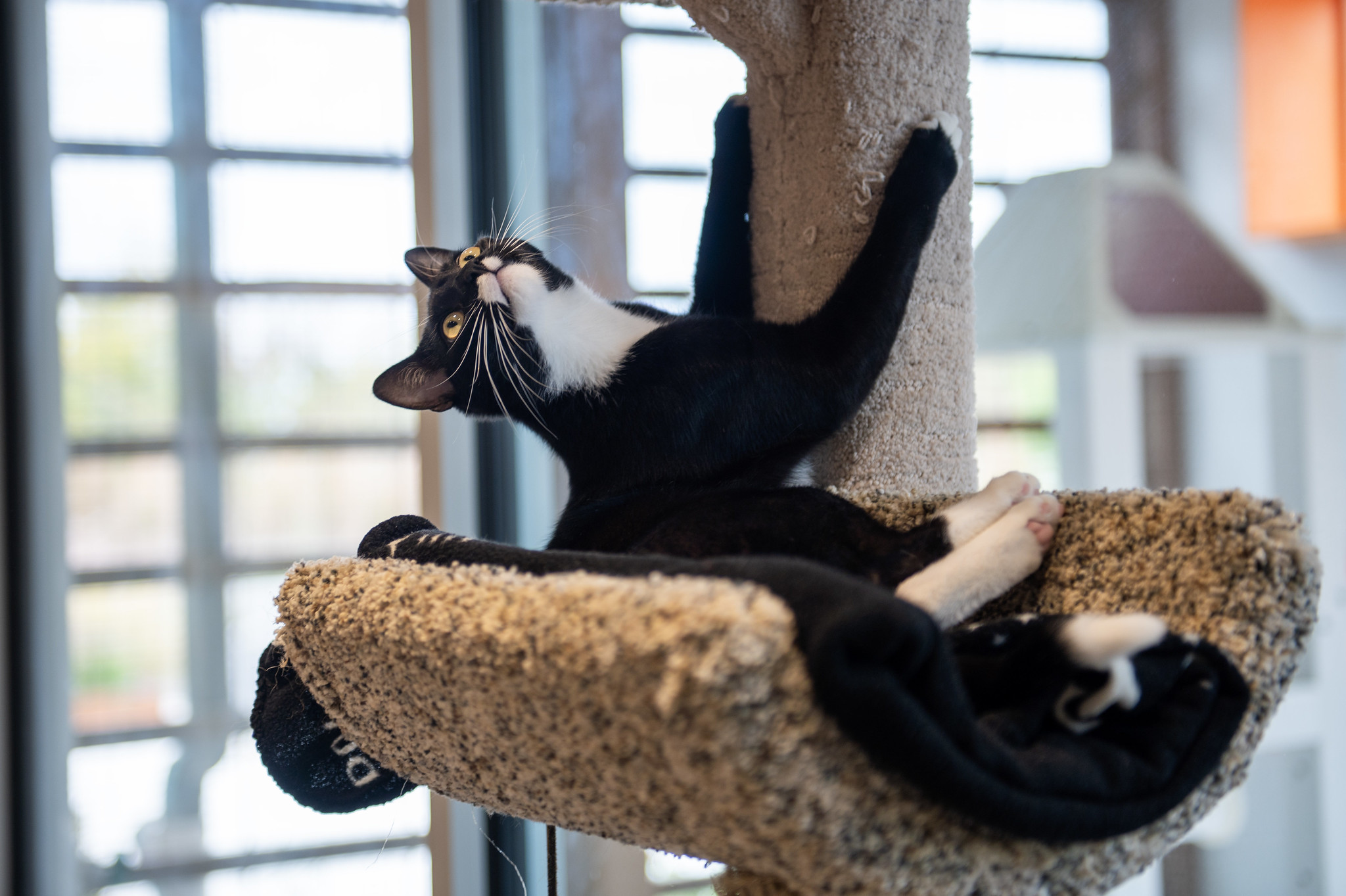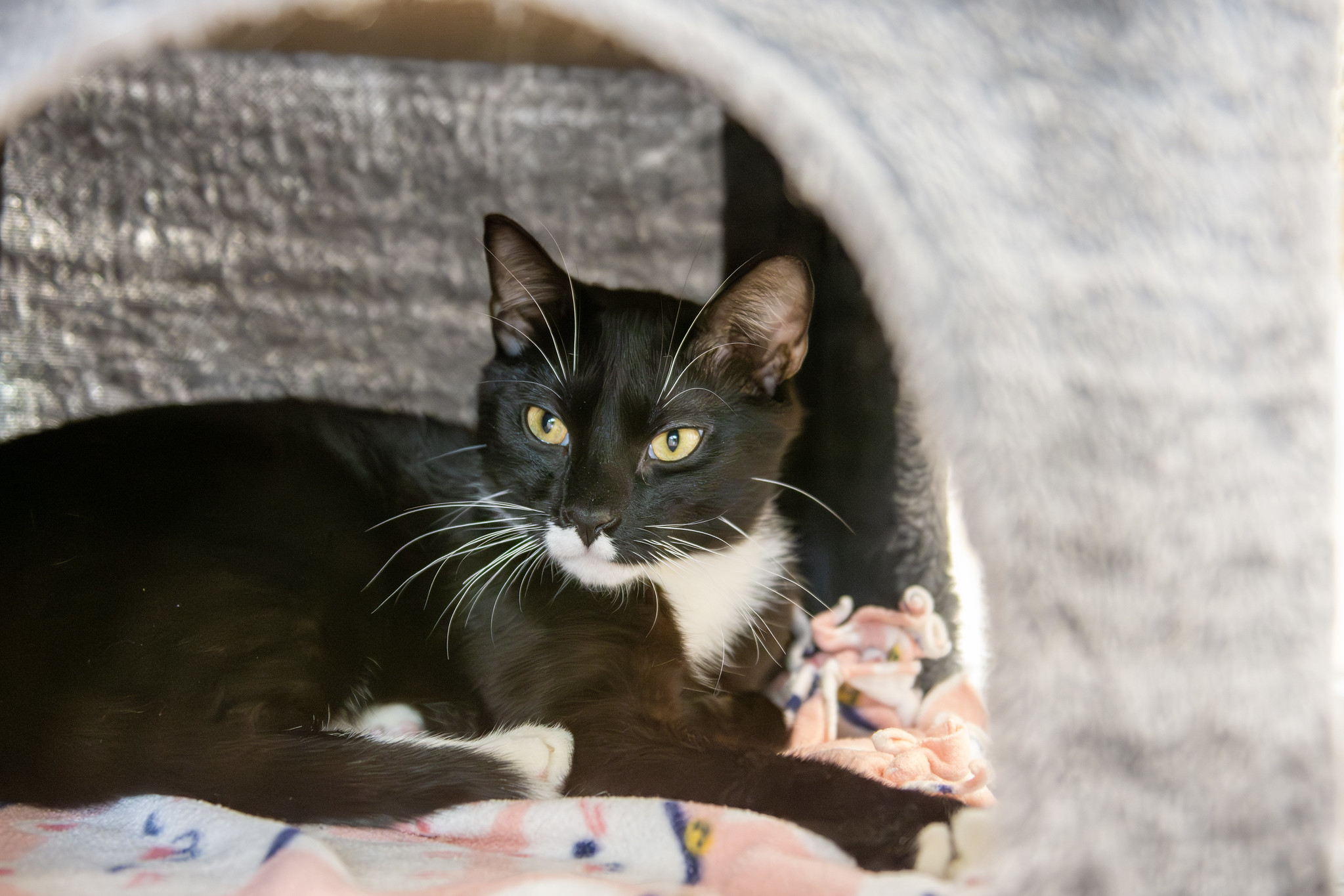 You’ll often find this leading man curled up in a quiet corner, savoring the peace like a true star enjoying his downtime. Despite his love of calm spaces, he’s always happy to have a visitor. The moment you sit beside him and offer gentle pets, he melts into the attention, purring softly and closing his eyes with pure contentment.