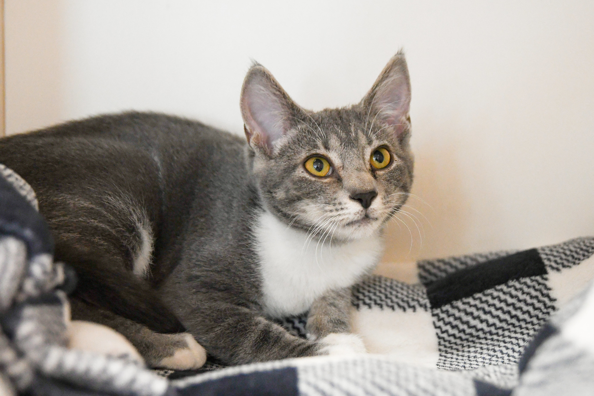 Our little ones have been fully vetted. As you’d expect, they love to play, and they race around like maniacs until they suddenly fall asleep. Nap time lasts just a short while, then play resumes. While adopting more than one kitten isn’t mandatory, it’s awfully nice for these young’uns to have someone their age to play with.