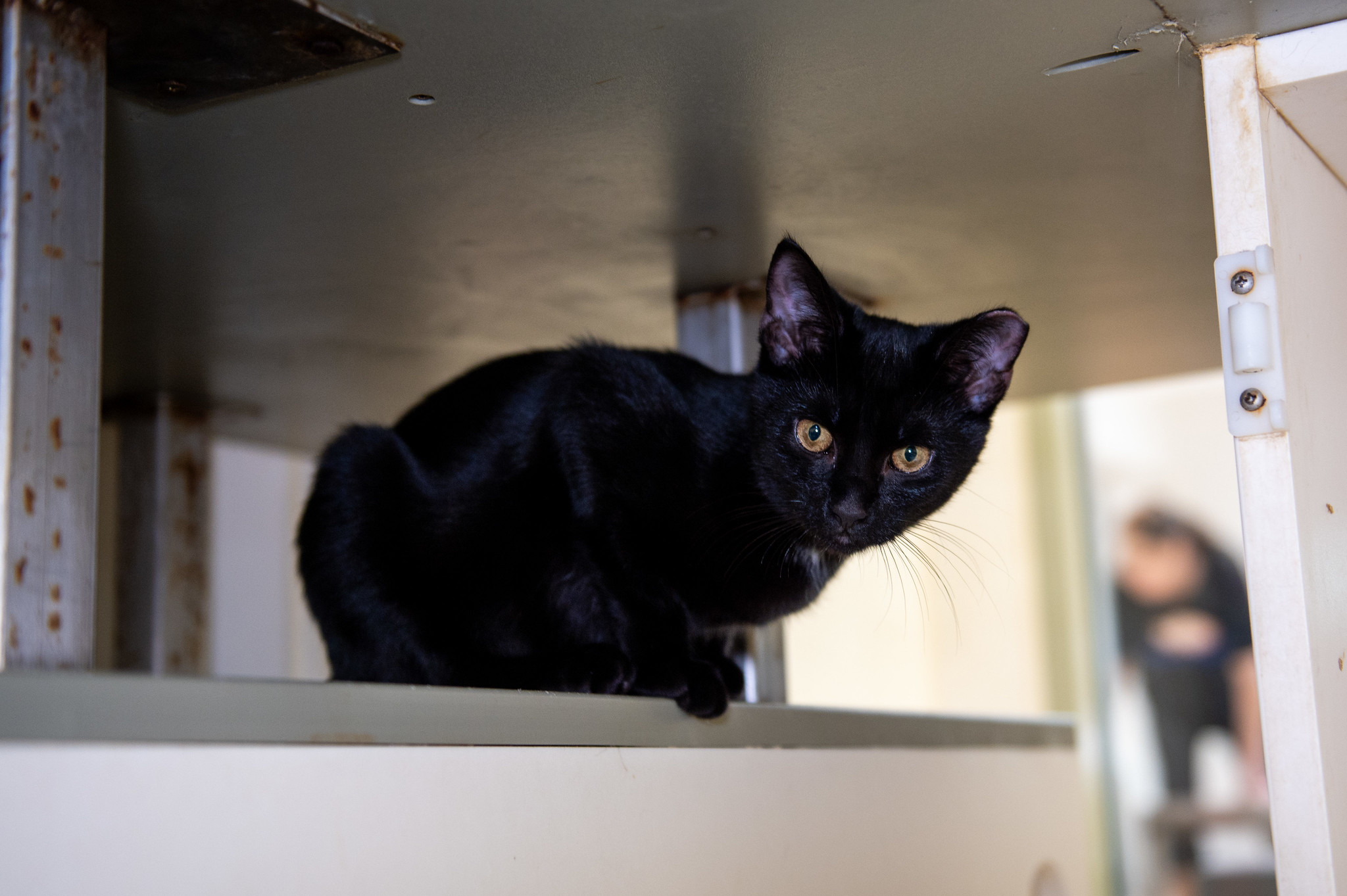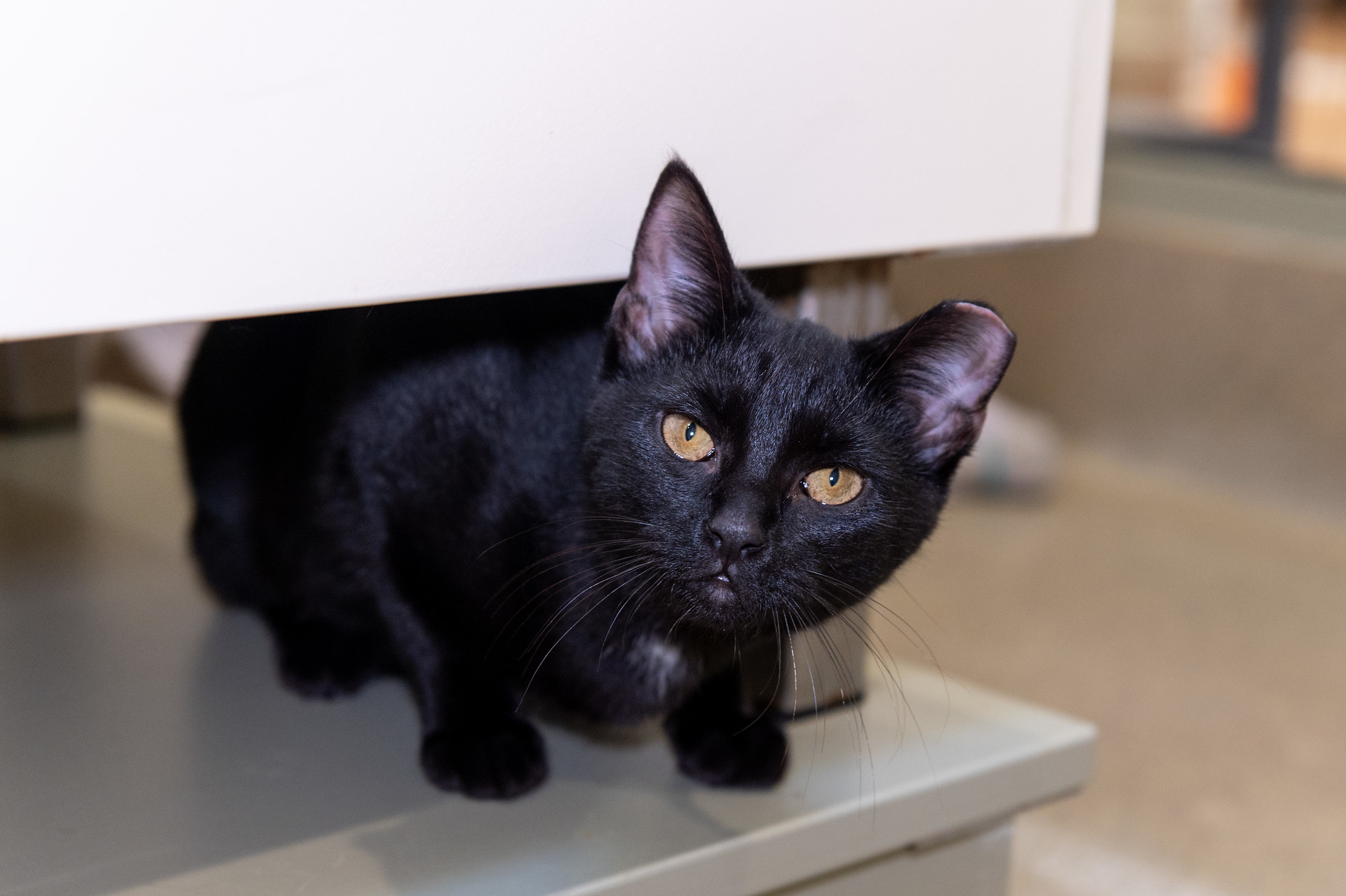 Wiggly was born outside, and did not have much interaction with people before coming to Tabby’s Place. As such, she is still quite shy. Humans are large and scary, so being fearful in their presence at first is completely understandable! That being said, young’uns like Wiggly adapt quickly, and with time and consistent socialization, she has the potential to become an affectionate, loving lap-cat.