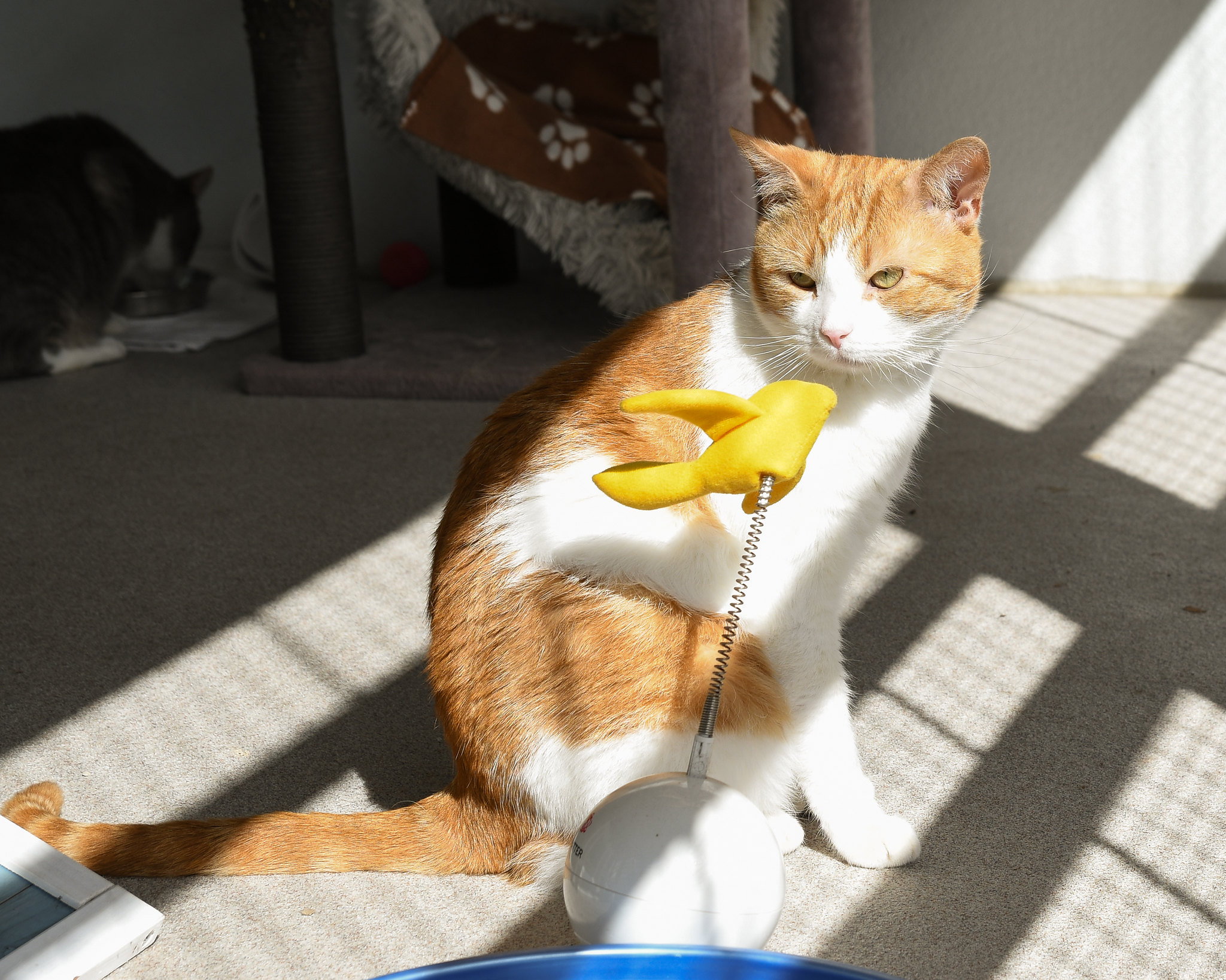 With his serious expression, our Mister Rogers resembles Daniel Striped Tiger, Fred Rogers’s most beloved puppet. But Mister Rogers’s long whiskers curve upwards like a smile, revealing his true nature. His little nose even wrinkles up with joy when you give him cheek scritches in juuuuust the right spot.