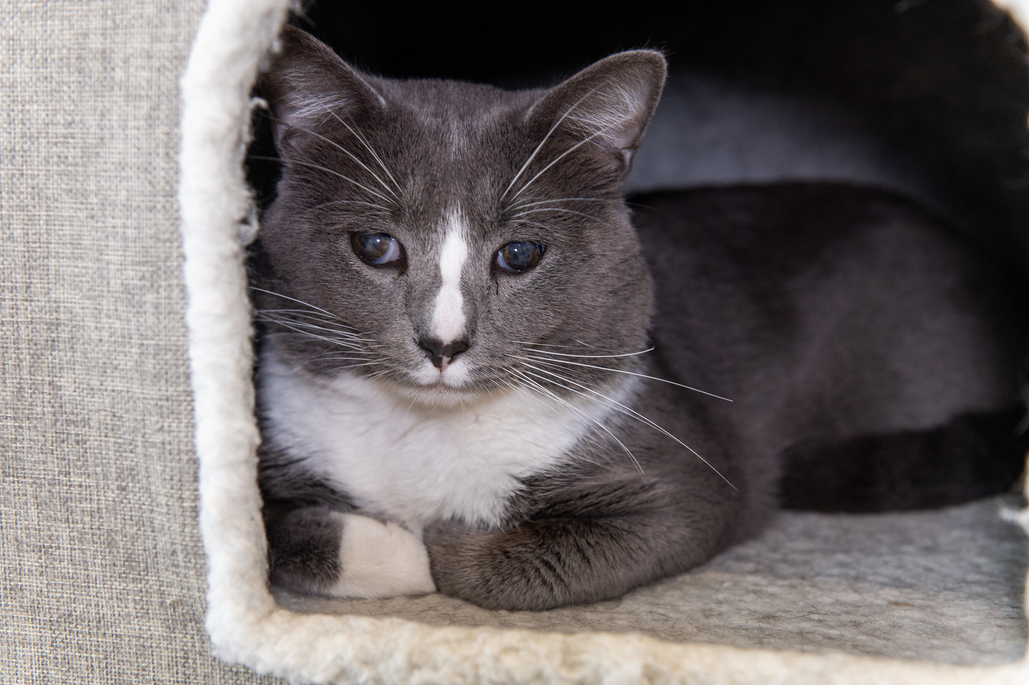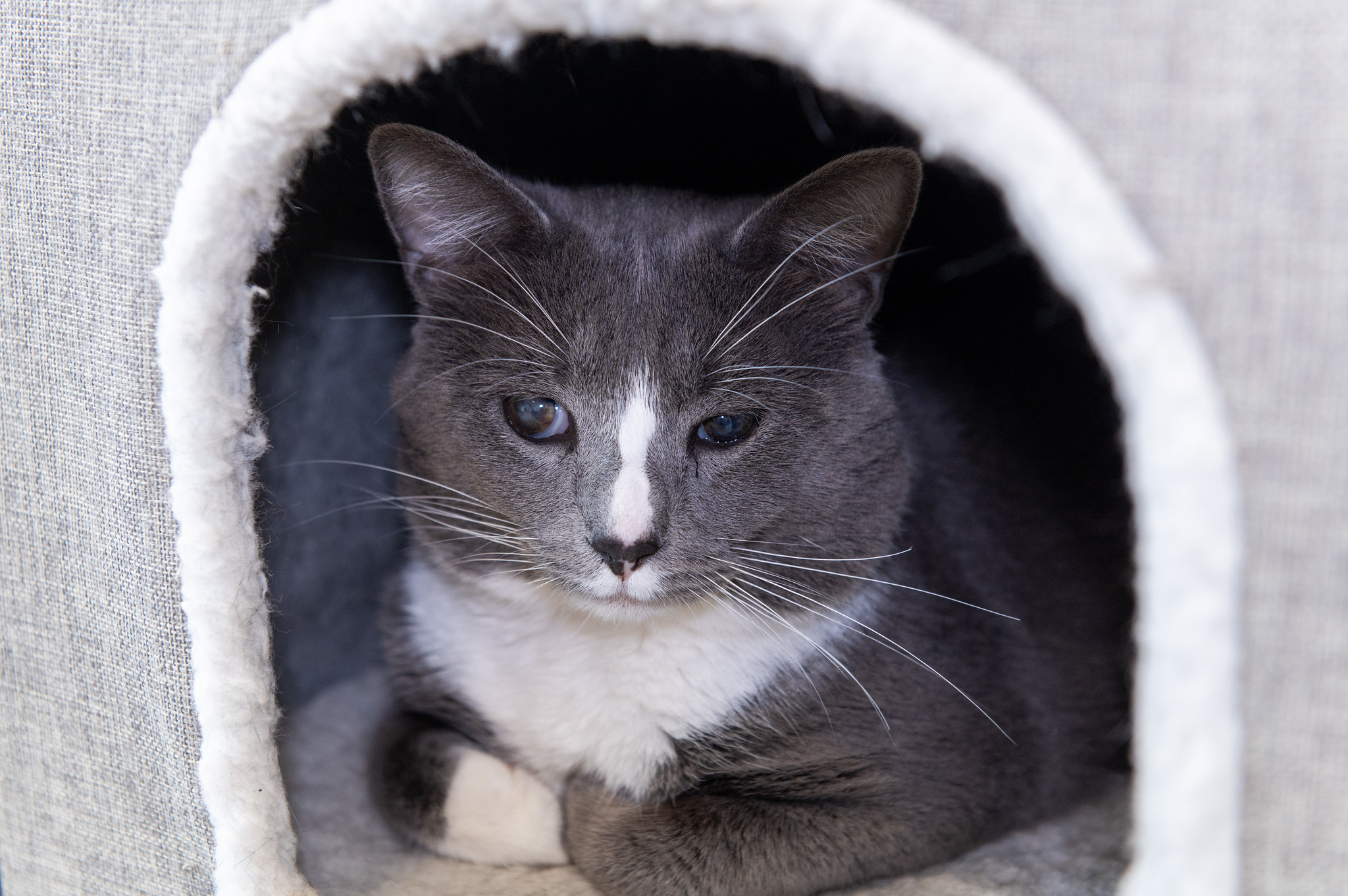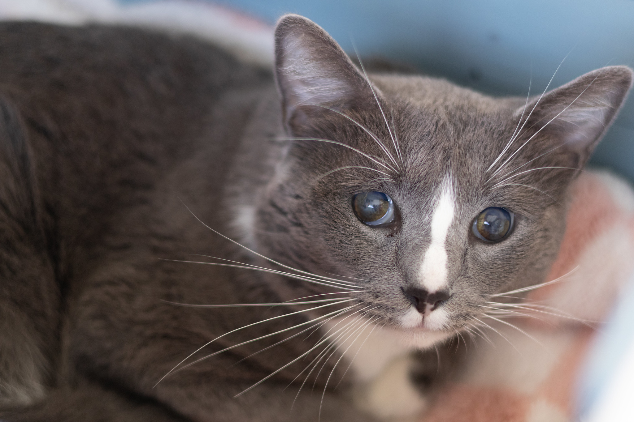 This gentle gray-and-white tuxedo has lived through the unforgiving streets of Baltimore, navigating darkness both literal and figurative. Blind and FeLV+, Braveheart has faced a world stacked against him — and yet, he’s here. He’s alive. He’s safe. And now, he’s learning what it means to be loved.