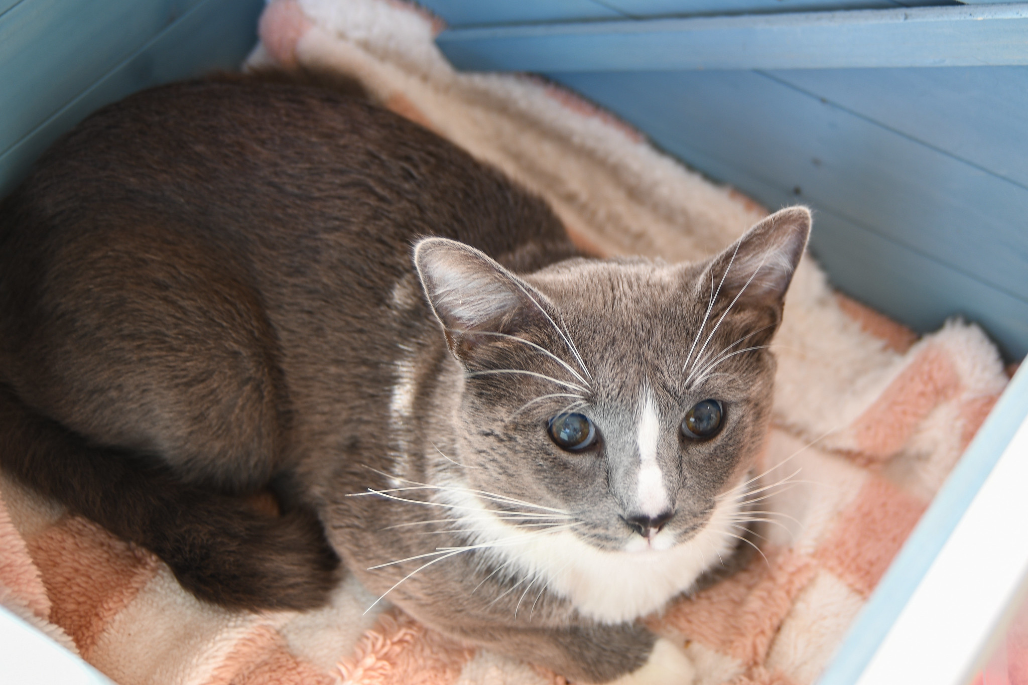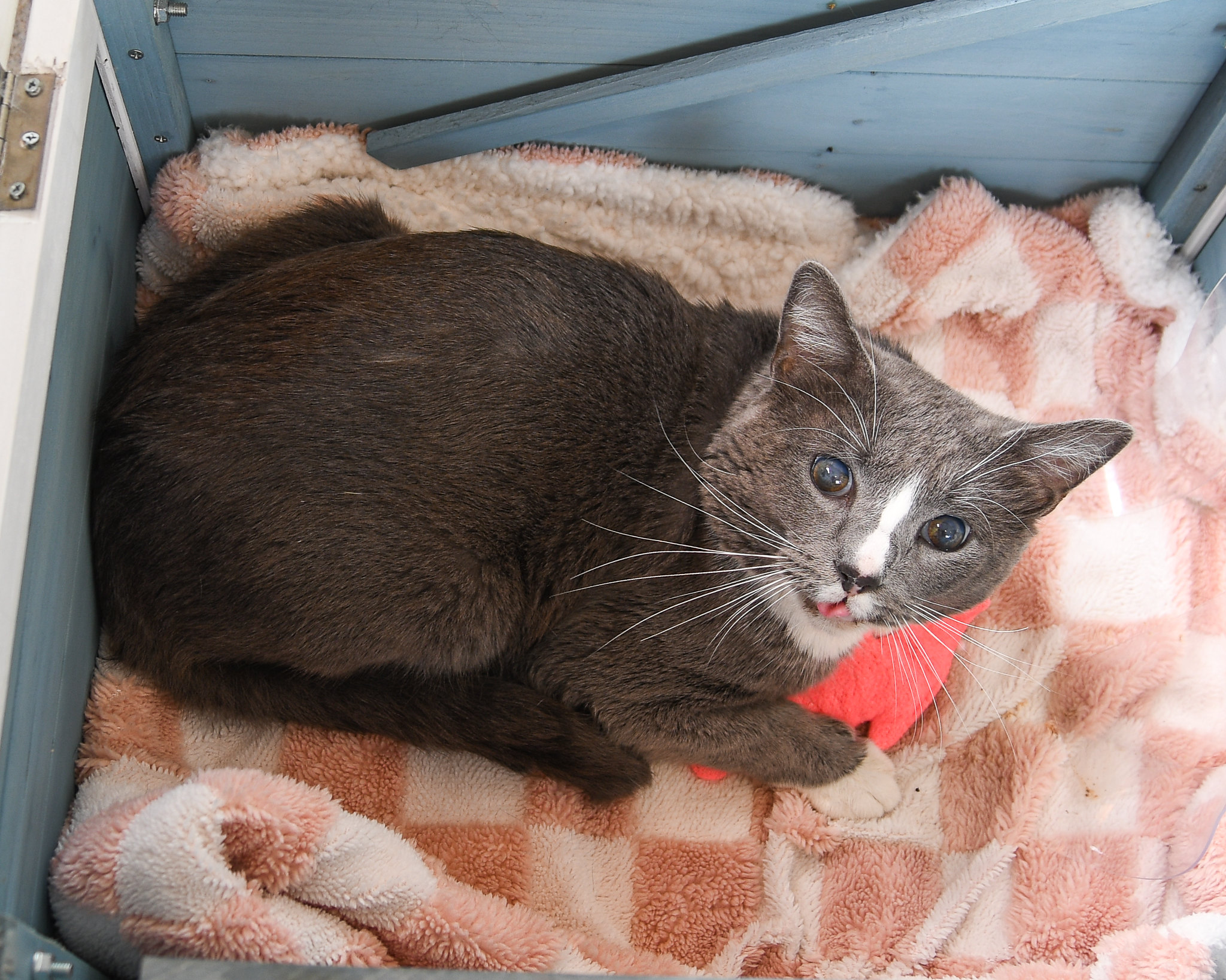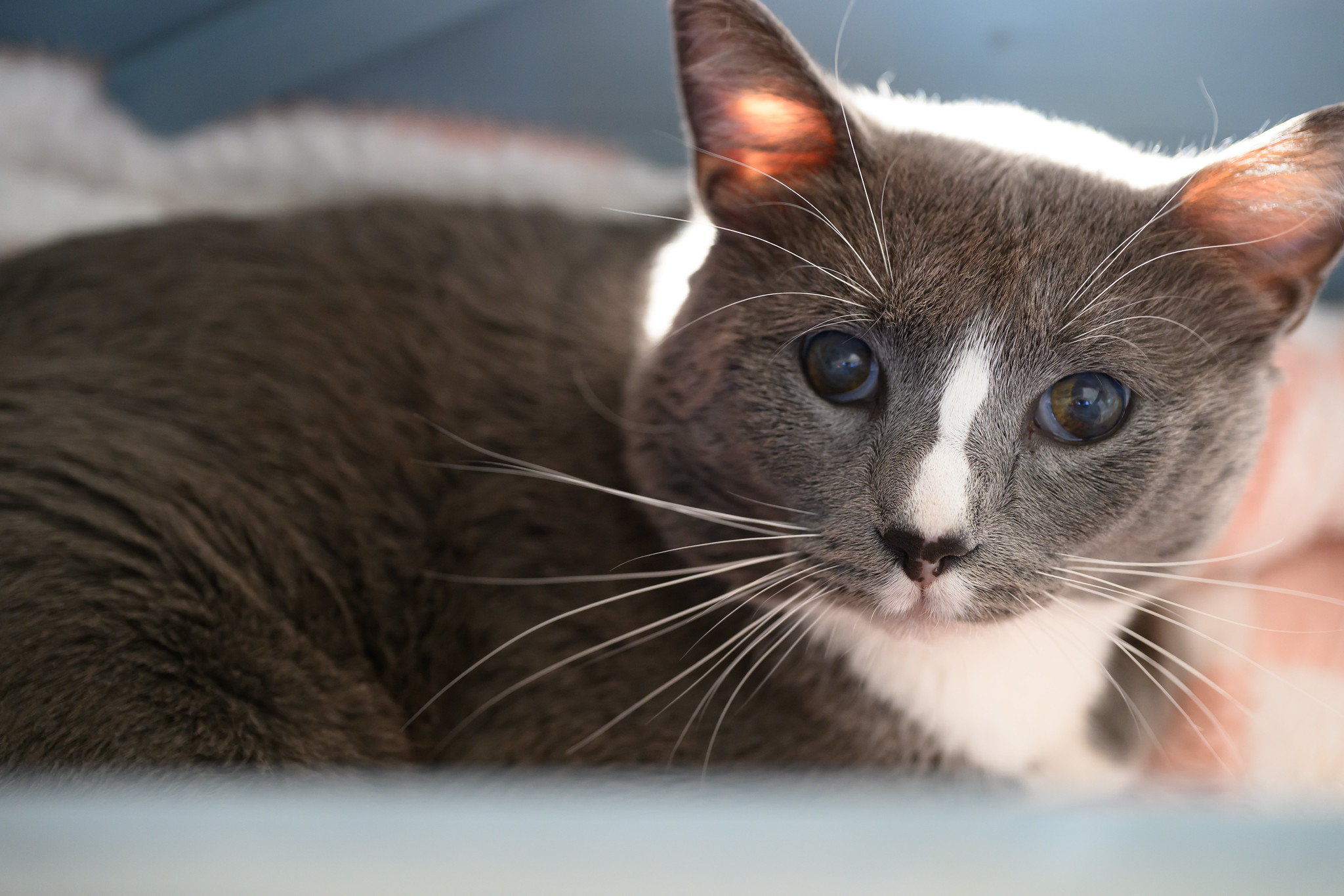 This gentle gray-and-white tuxedo has lived through the unforgiving streets of Baltimore, navigating darkness both literal and figurative. Blind and FeLV+, Braveheart has faced a world stacked against him — and yet, he’s here. He’s alive. He’s safe. And now, he’s learning what it means to be loved.