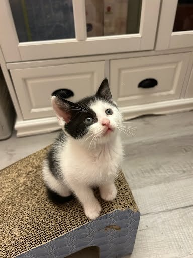 Our little ones have been fully vetted. As you’d expect, they love to play, and they race around like maniacs until they suddenly fall asleep. Nap time lasts just a short while, then play resumes. While adopting more than one kitten isn’t mandatory, it’s awfully nice for these young’uns to have someone their age to play with.