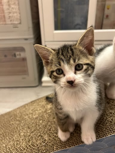 Our little ones have been fully vetted. As you’d expect, they love to play, and they race around like maniacs until they suddenly fall asleep. Nap time lasts just a short while, then play resumes. While adopting more than one kitten isn’t mandatory, it’s awfully nice for these young’uns to have someone their age to play with.