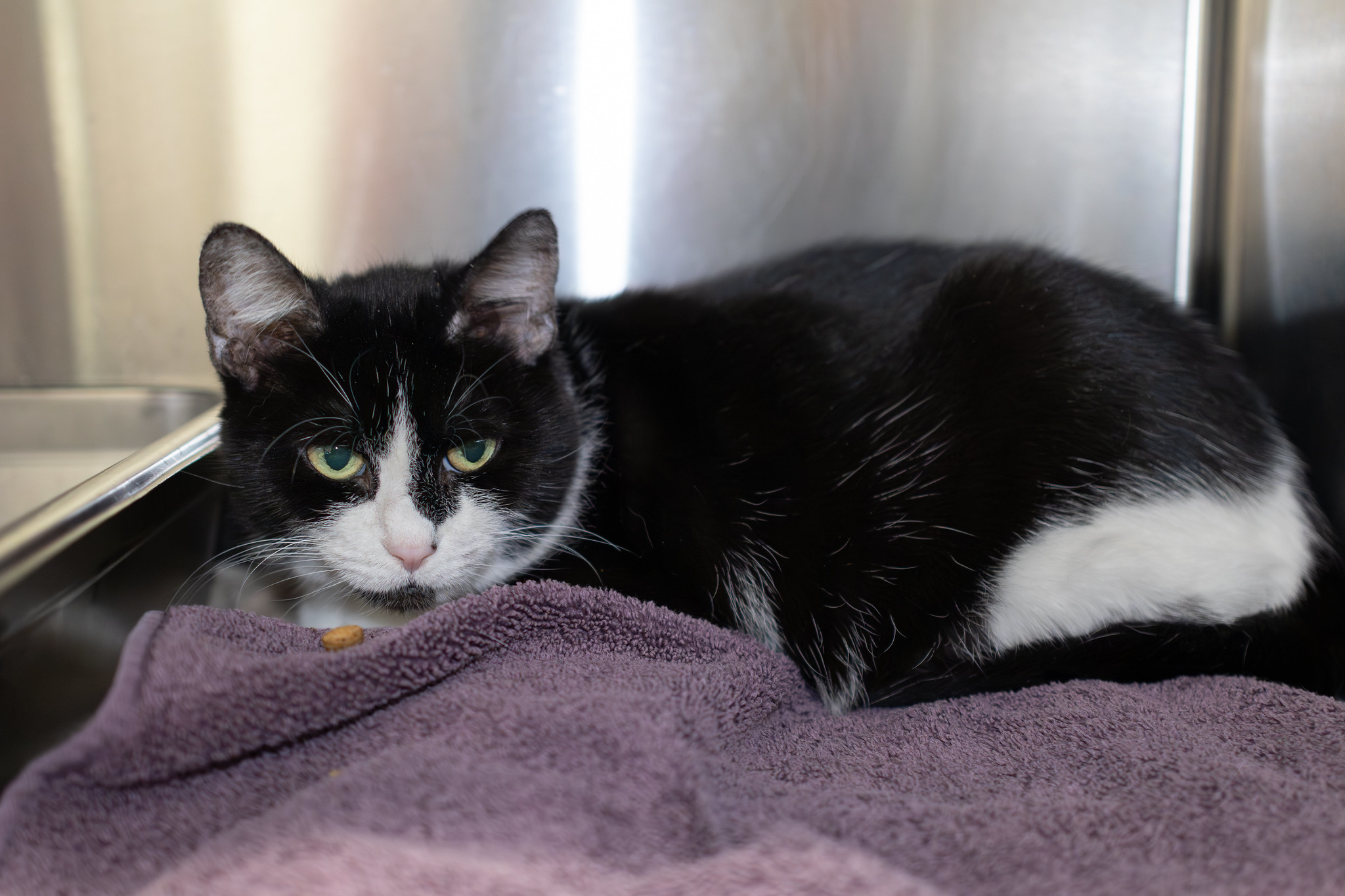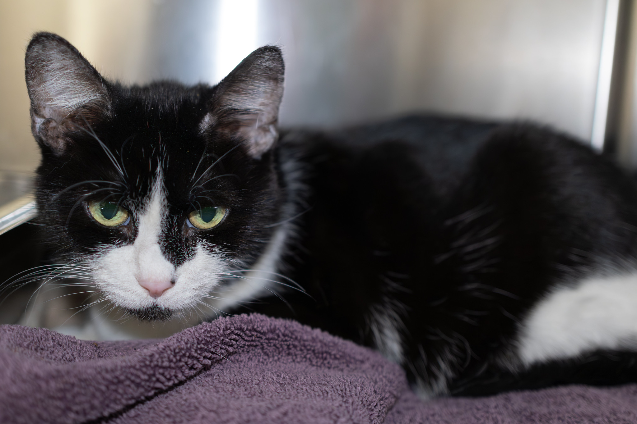 Sandy is looking for a patient, loving adopter who’ll give her the time she needs to build trust. She’d be perfectly content as a solo cat, but also wouldn’t mind sharing a peaceful home with other laid-back kitties.