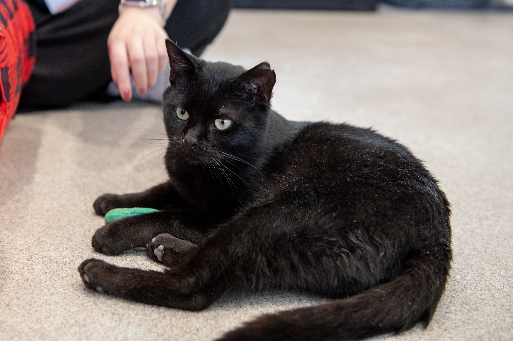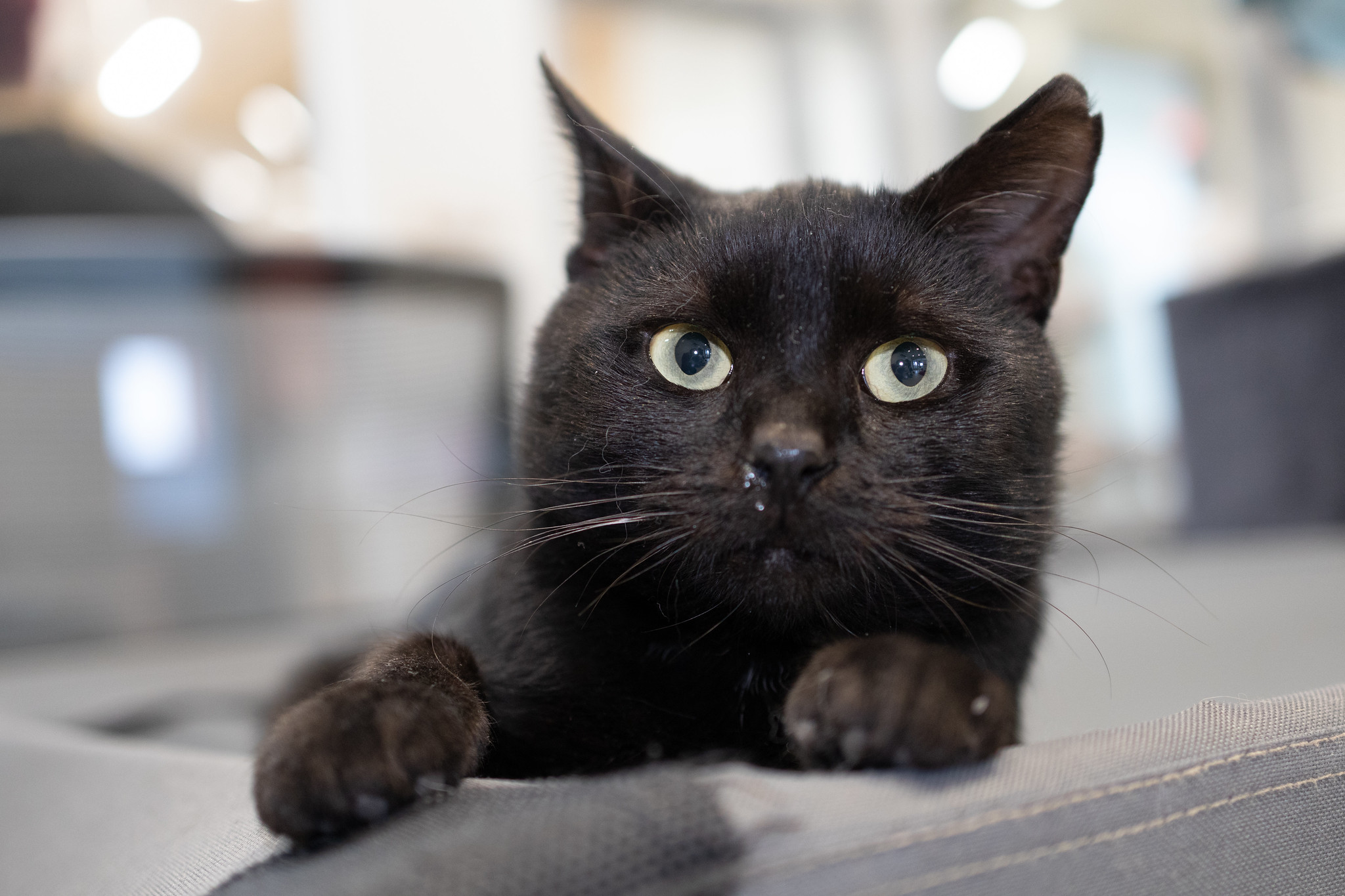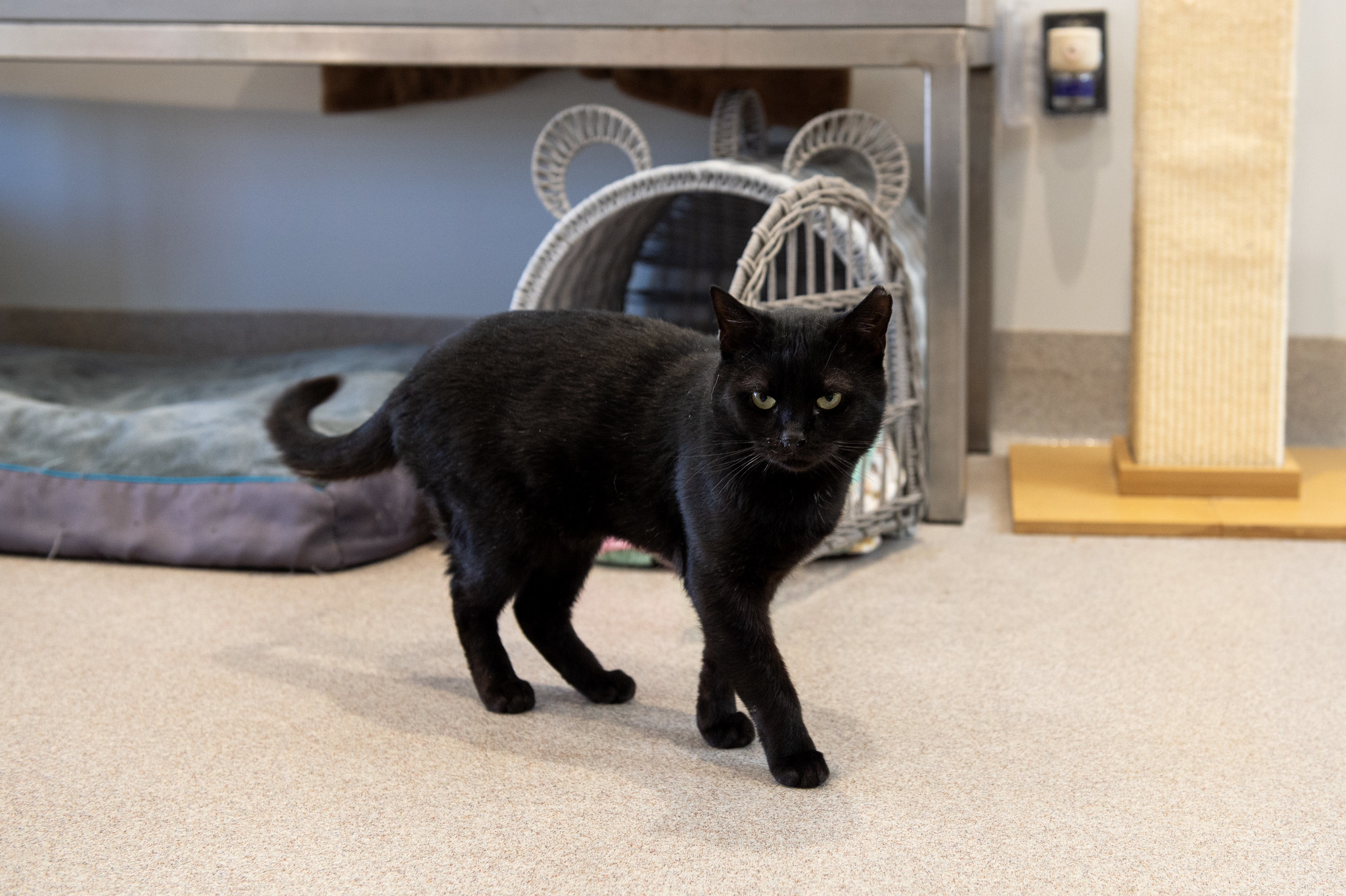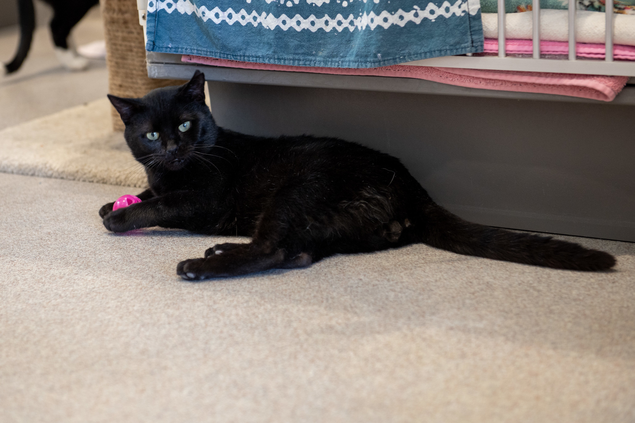 At just 7 months old, Polka is a pint-sized panther with a personality that’s larger than life. He’s all about the good vibes — none of that “black cats are bad luck” nonsense here. This little shadow is all sweetness and snuggles, with a serious soft spot for cuddle time. But don’t be fooled by his mellow moments — when the wand toy appears, Polka becomes a stealthy hunter, diving through cat tunnels with the enthusiasm of a feline Olympian. Unlike your typical catch-and-chew kitty, Polka lives for the thrill of the chase. Why nibble when you can pounce again and again?