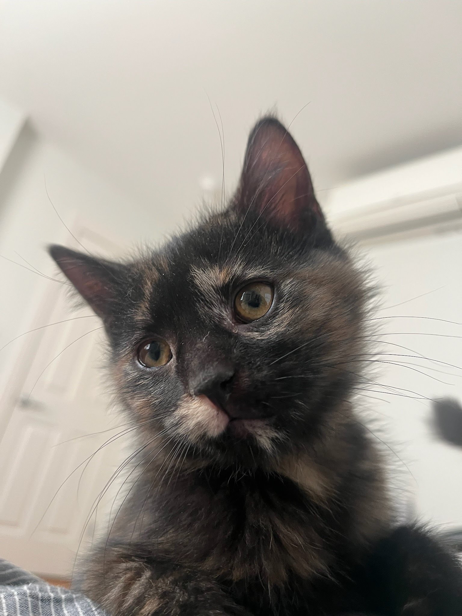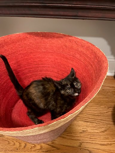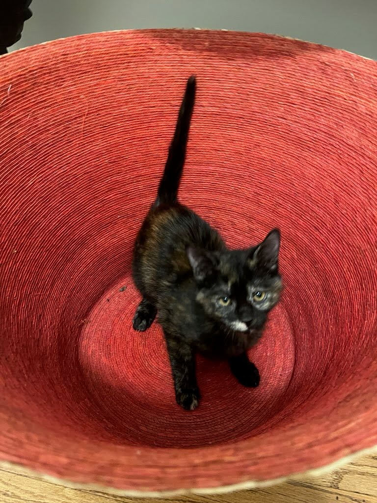 Our little ones have been fully vetted. As you’d expect, they love to play, and they race around like maniacs until they suddenly fall asleep. Nap time lasts just a short while, then play resumes. While adopting more than one kitten isn’t mandatory, it’s awfully nice for these young’uns to have someone their age to play with.