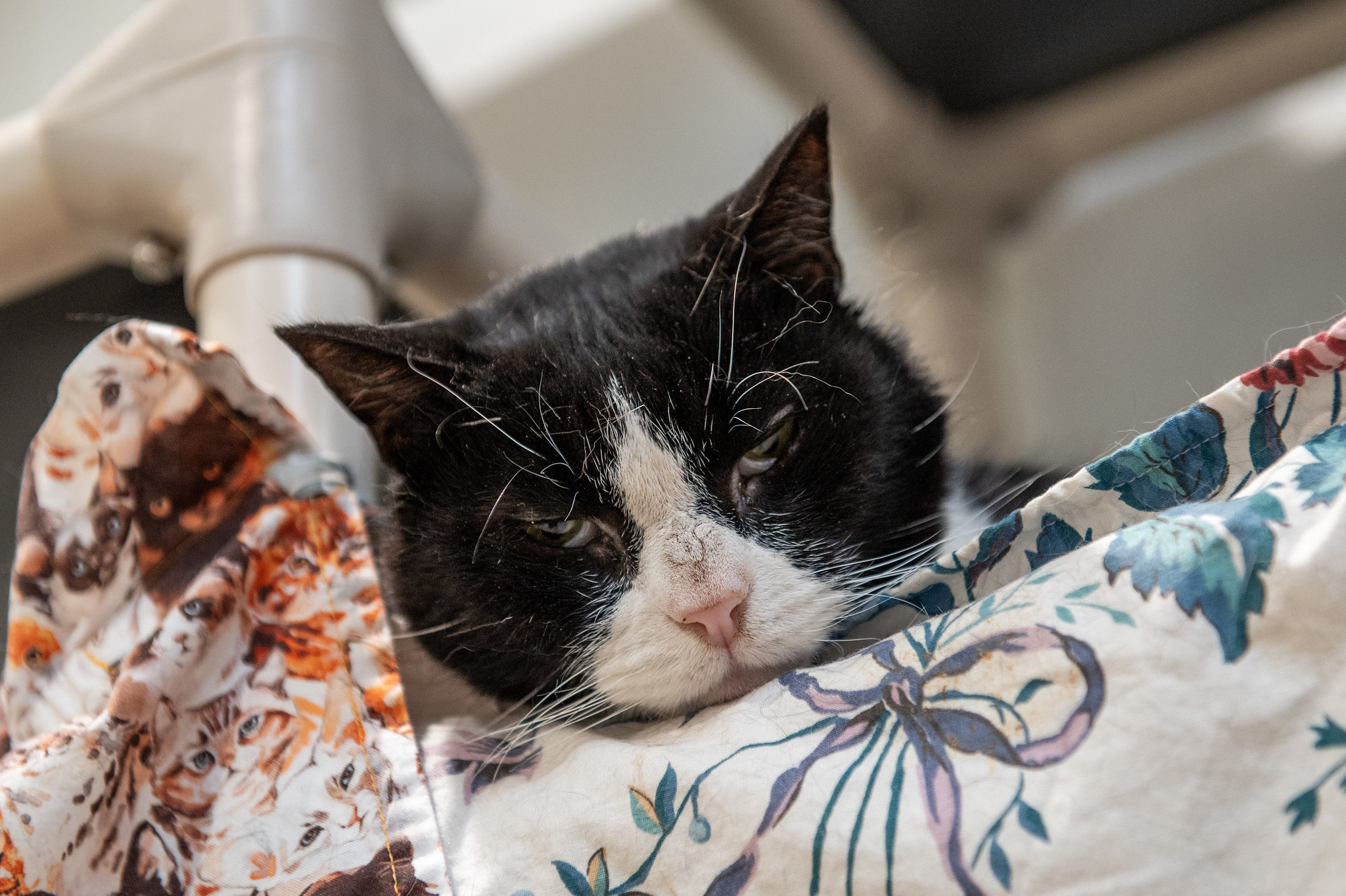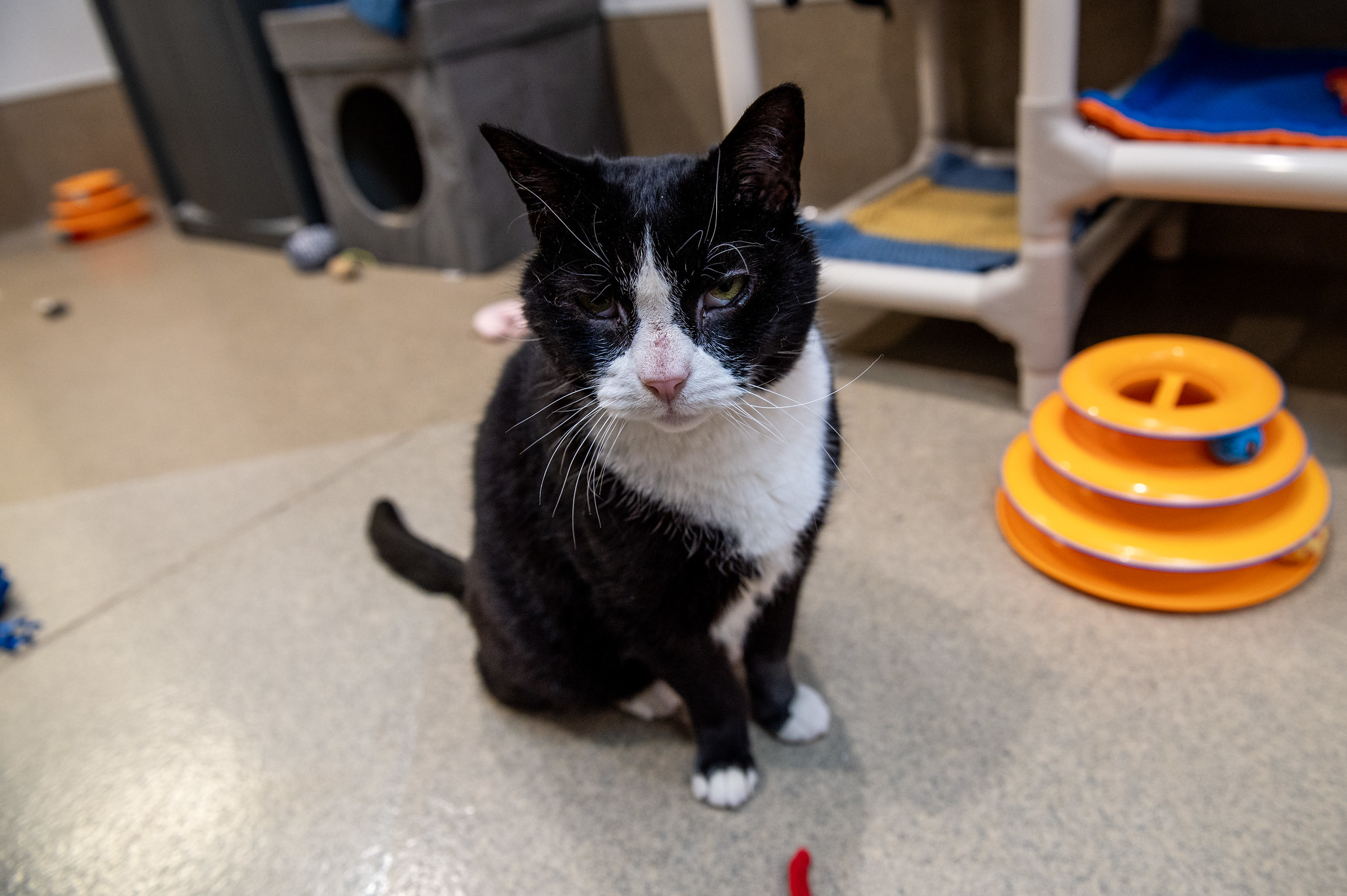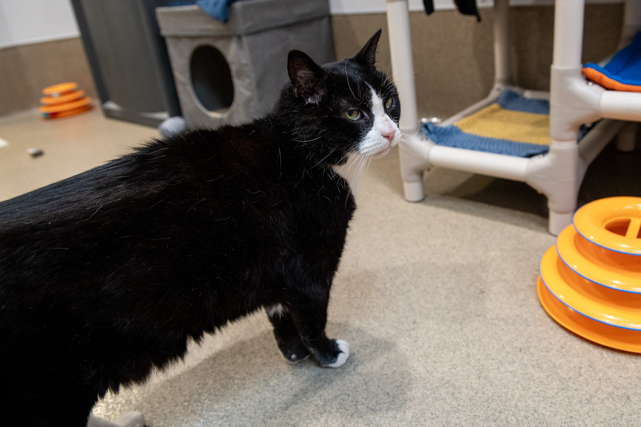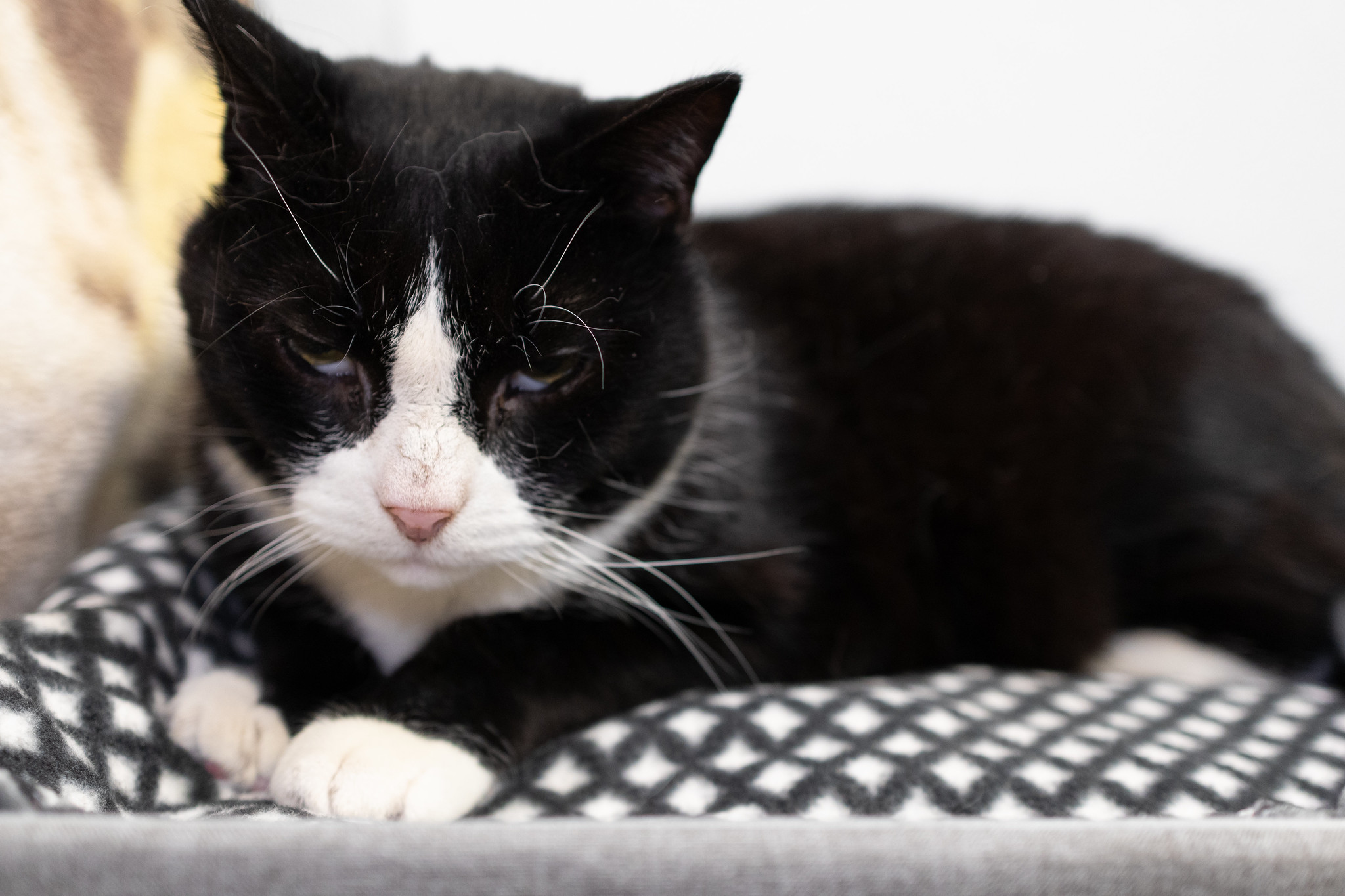 Smudge may be dressed in a tuxedo, but he’s not here for the limelight—at least, not right away. This big, beautiful boy is the quiet type: calm, gentle, and content to observe the world from a cozy corner. Give him a little time (and maybe a soft bed by the window), and you’ll see his sweet spirit will start to shine.