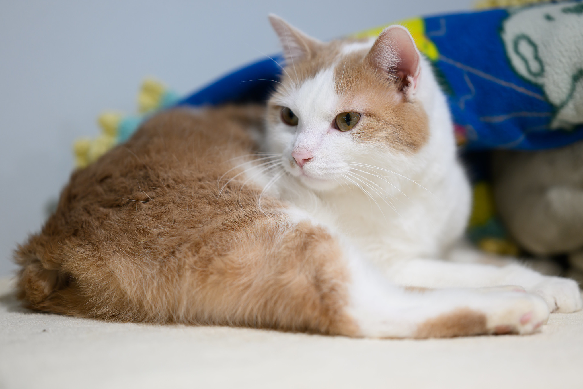 When Hannah isn’t basking in your attention, he enjoys playtime. He’s a curious guy who likes to explore his surroundings or bat a toy mouse around the room!