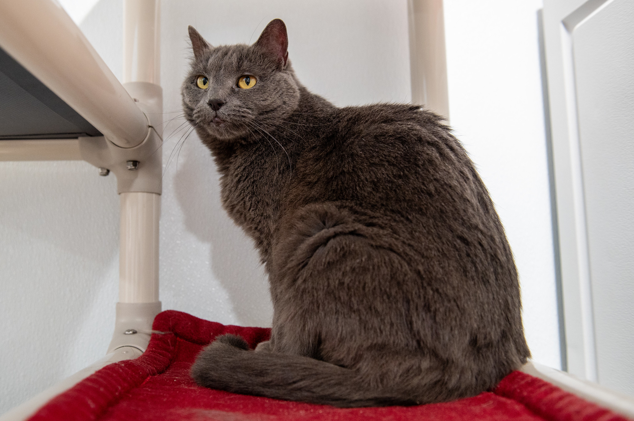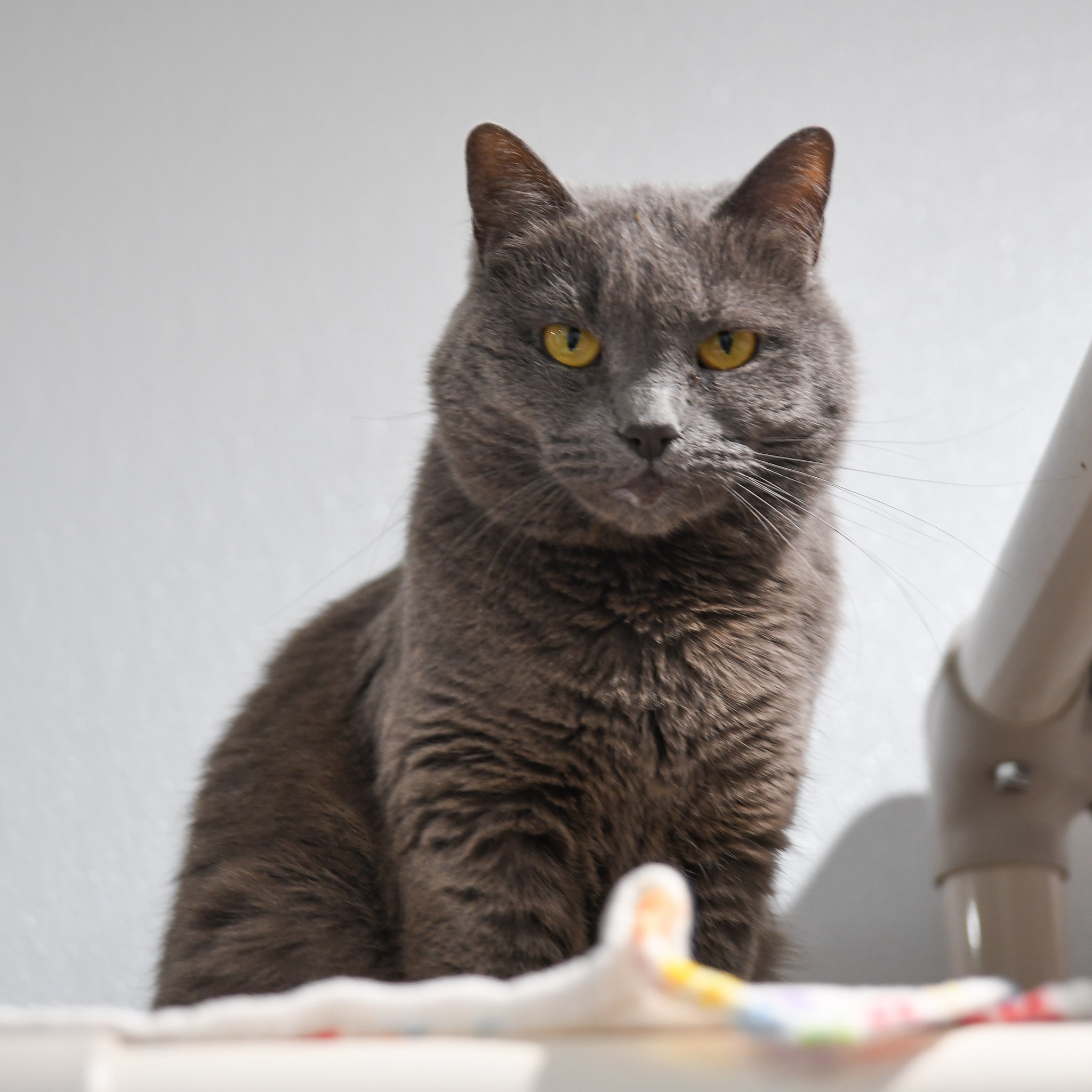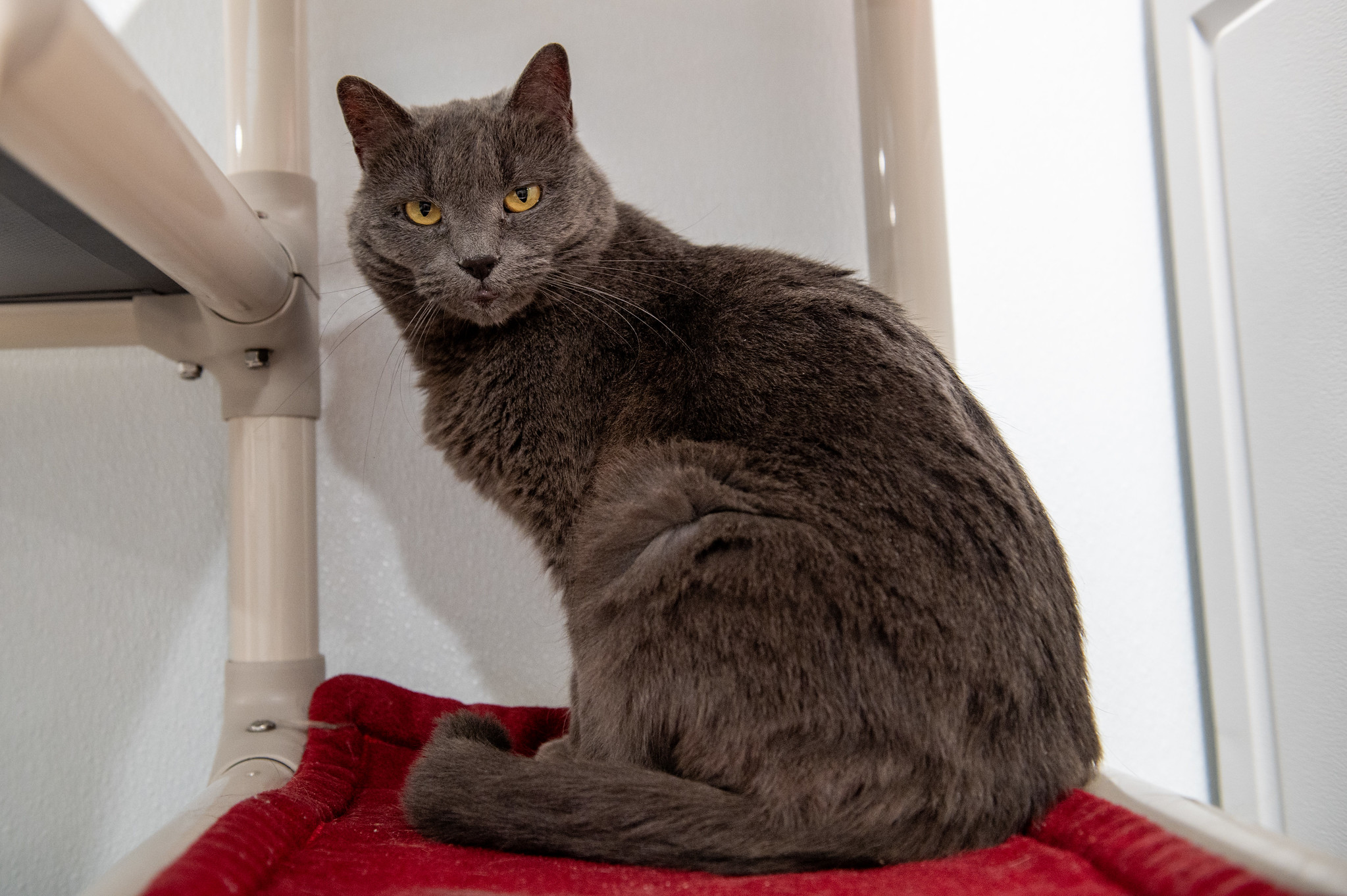 With a soft silver coat the color of a rainy sky and golden eyes that glow like sunrise through the mist, Stormiee is a vision of quiet beauty. Her personality is just as serene: sweet, timid, and mild-mannered, she moves through the world at her own soft pace, preferring calm corners and peaceful people.