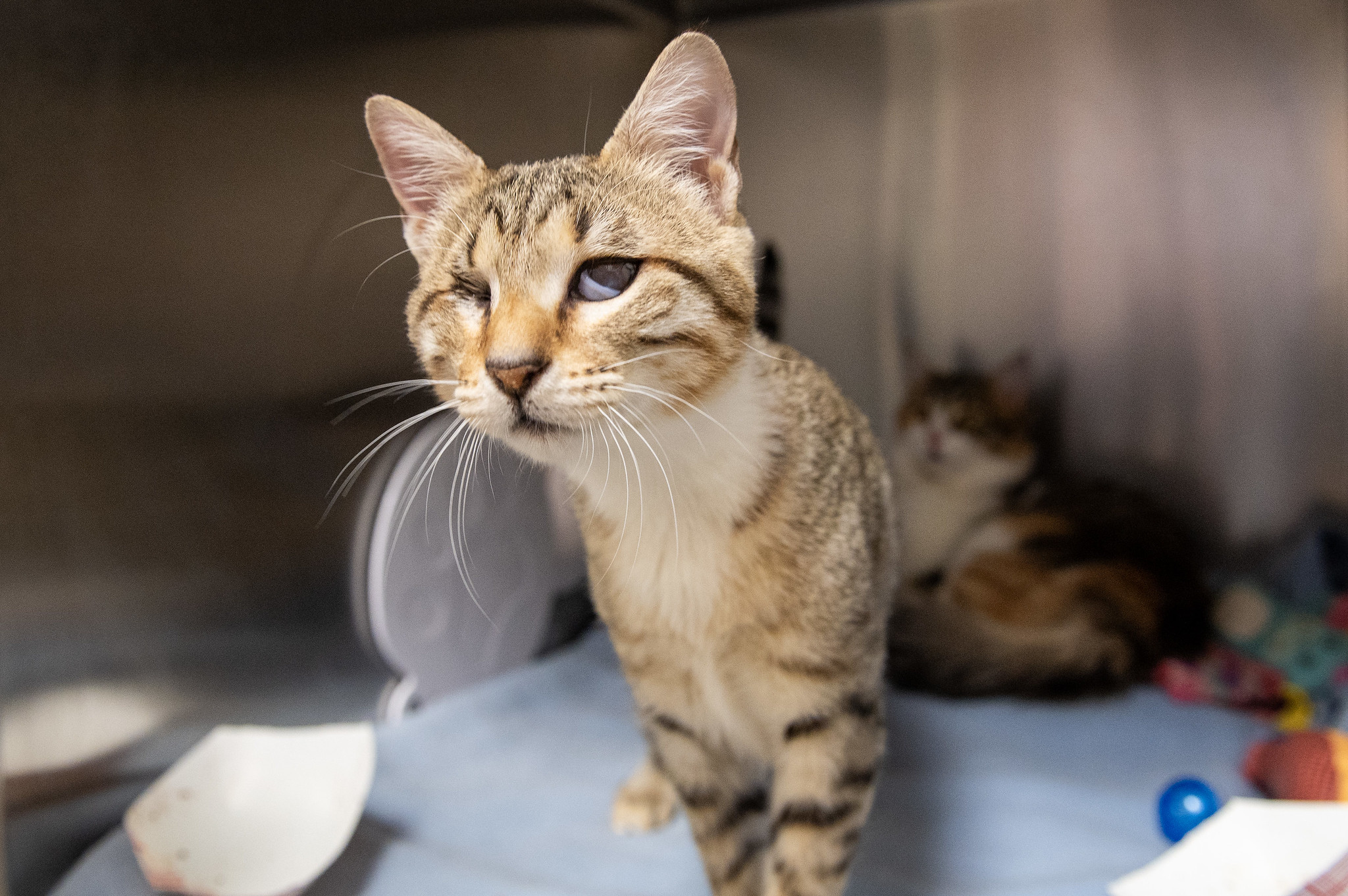 Our little ones have been fully vetted. As you’d expect, they love to play, and they race around like maniacs until they suddenly fall asleep. Nap time lasts just a short while, then play resumes. While adopting more than one kitten isn’t mandatory, it’s awfully nice for these young’uns to have someone their age to play with. Cookie would love to be adopted with her friend Cici.
