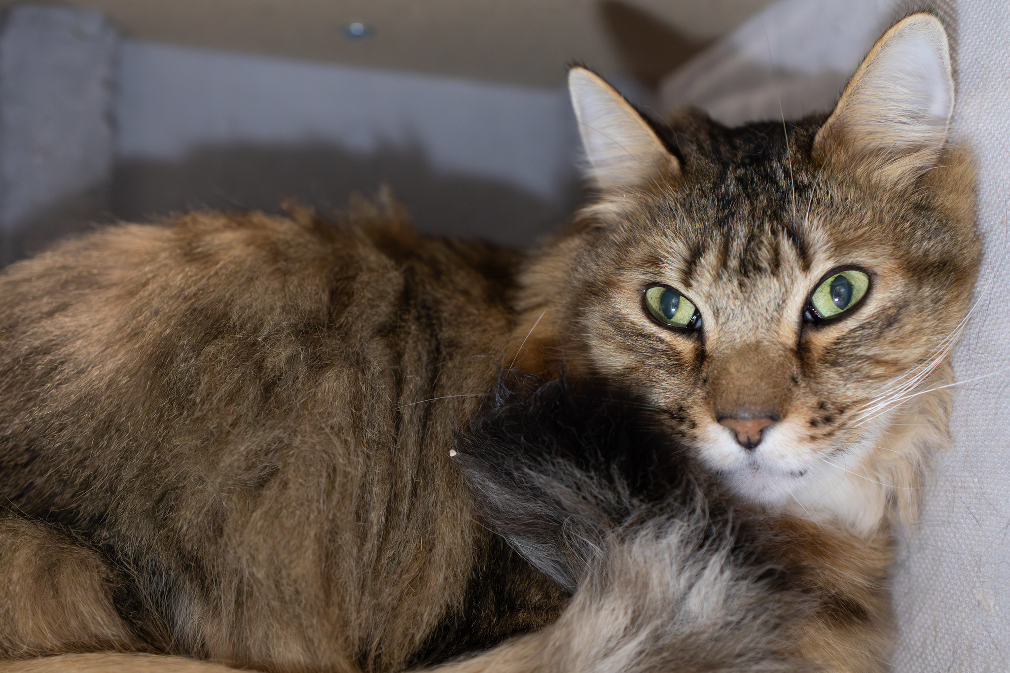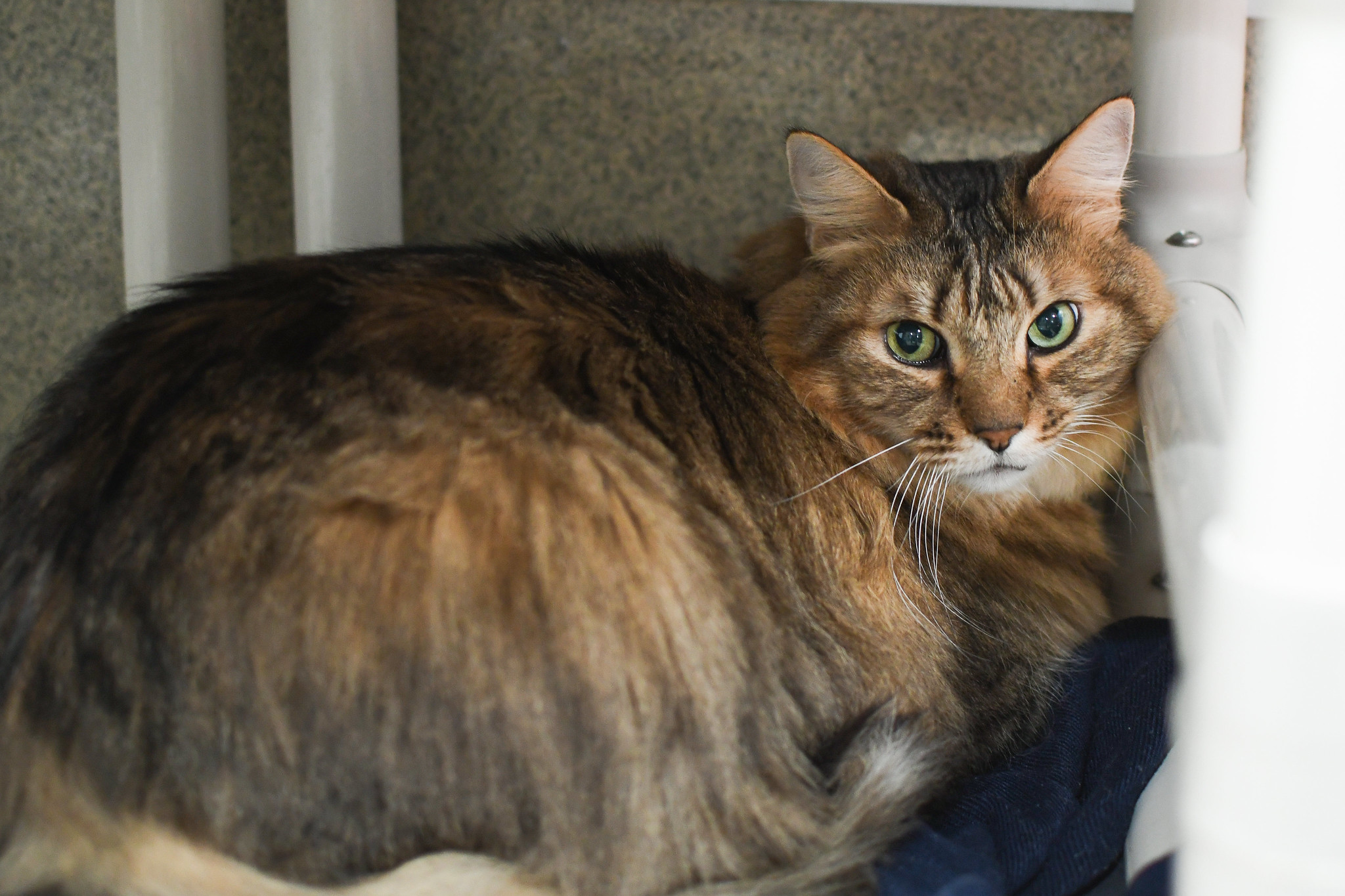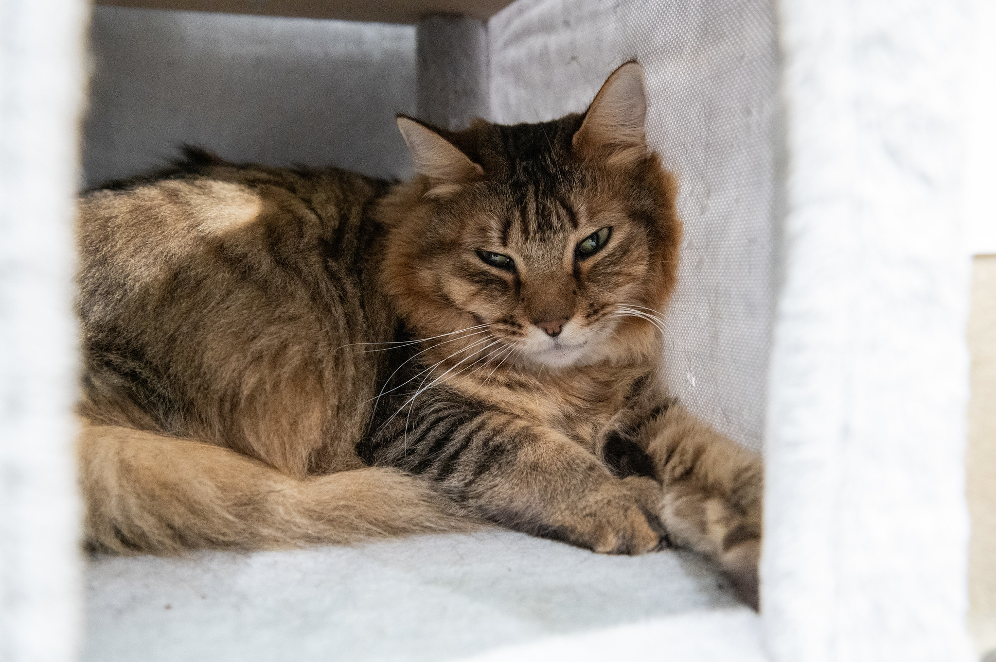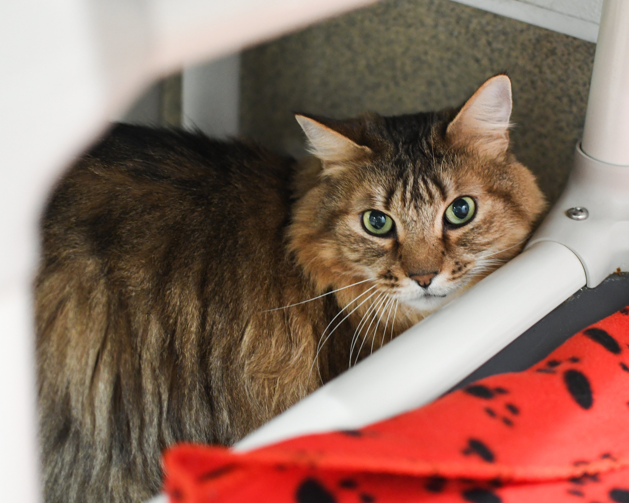 Raleigh is the kind of cat who doesn’t need to raise his voice to be heard—his gentle presence says it all. This handsome long-haired tabby, with his soft coat and soulful eyes, made the journey from North Carolina when his beloved person could no longer care for him. Now, as a distinguished senior gentleman, Raleigh is ready to settle into a new chapter filled with comfort, kindness, and plenty of well-earned attention.