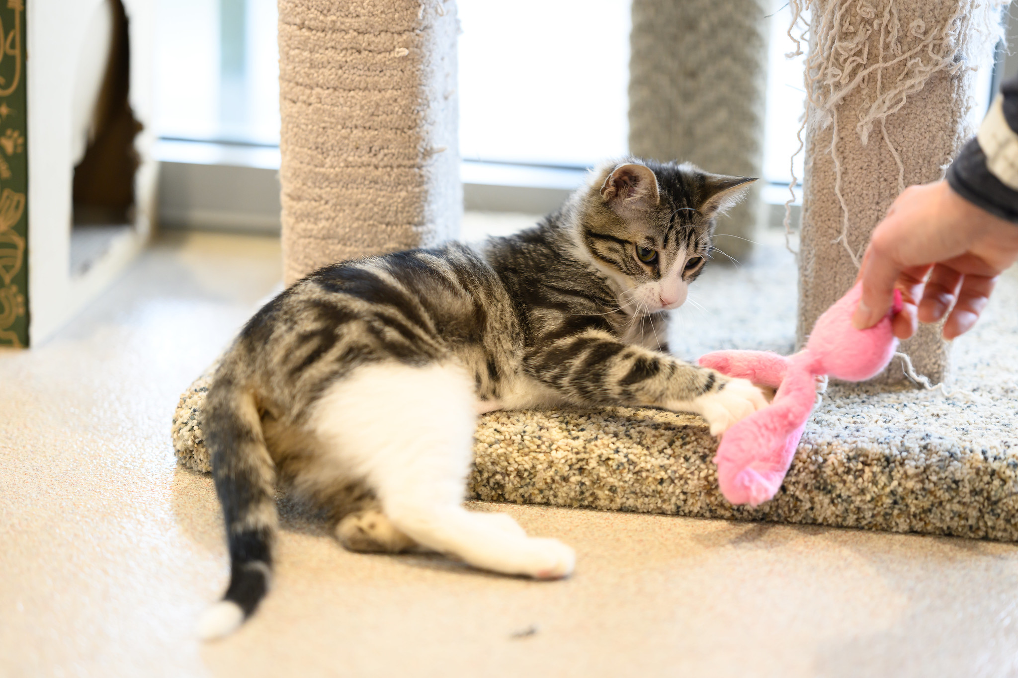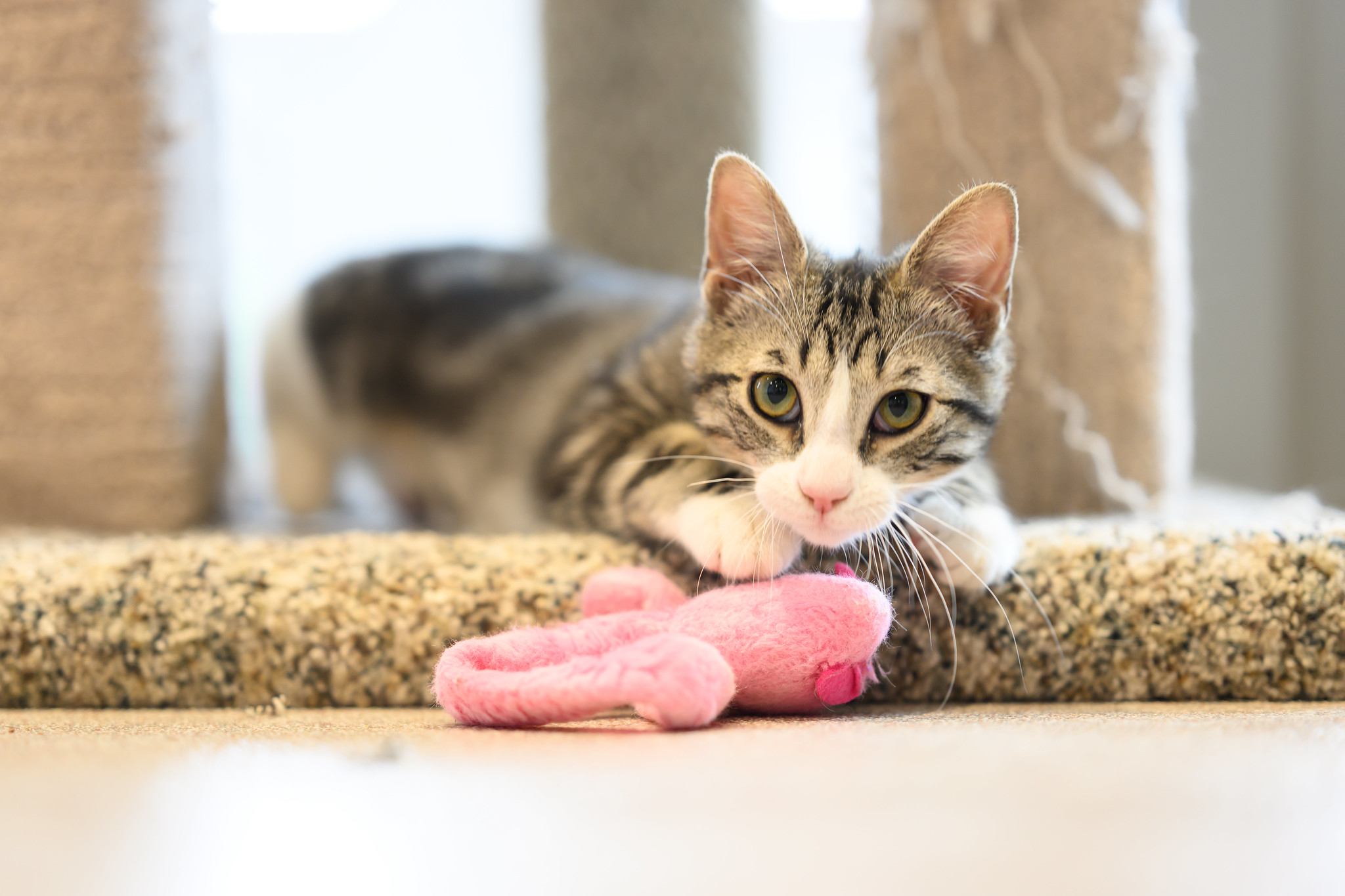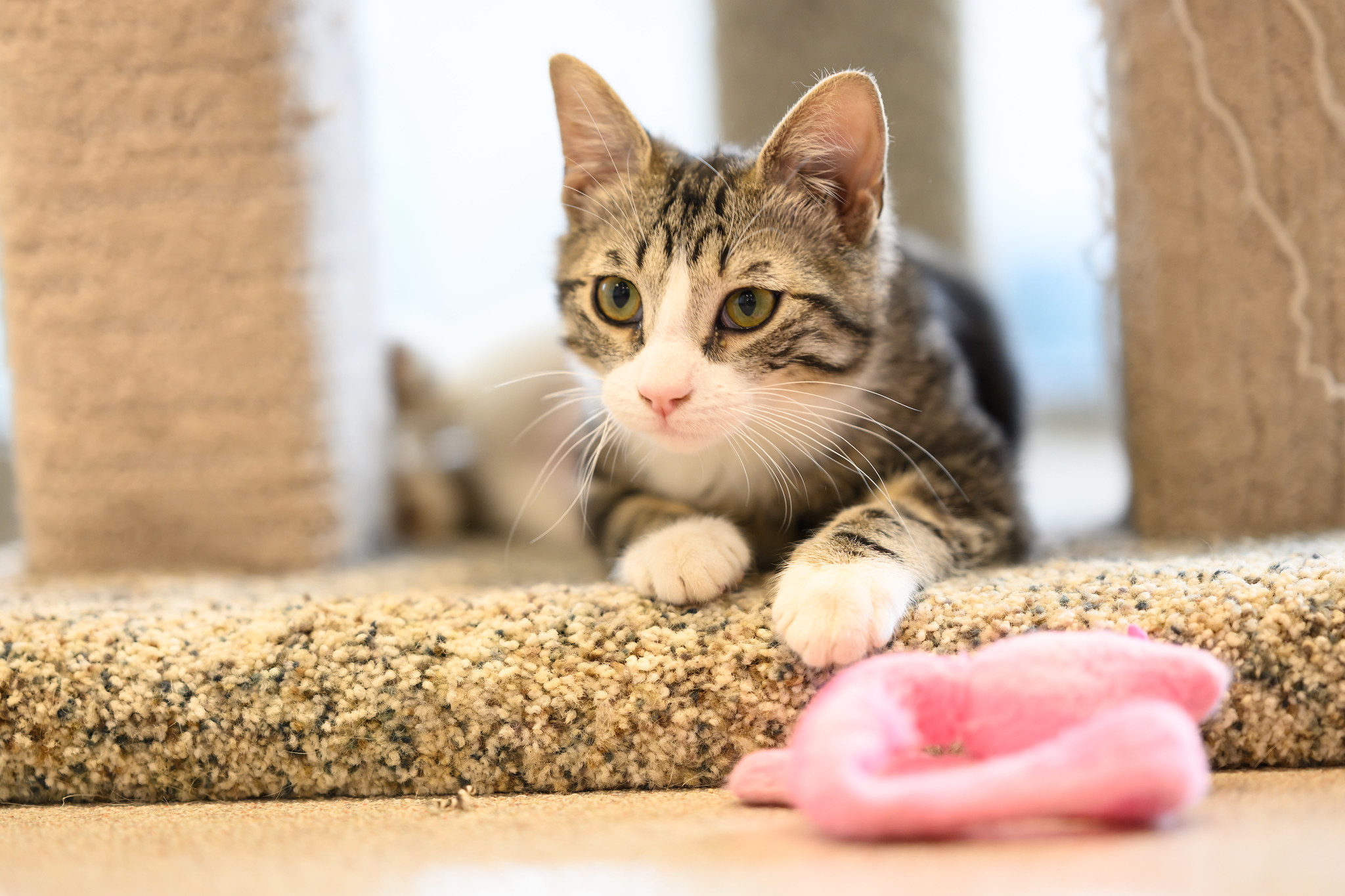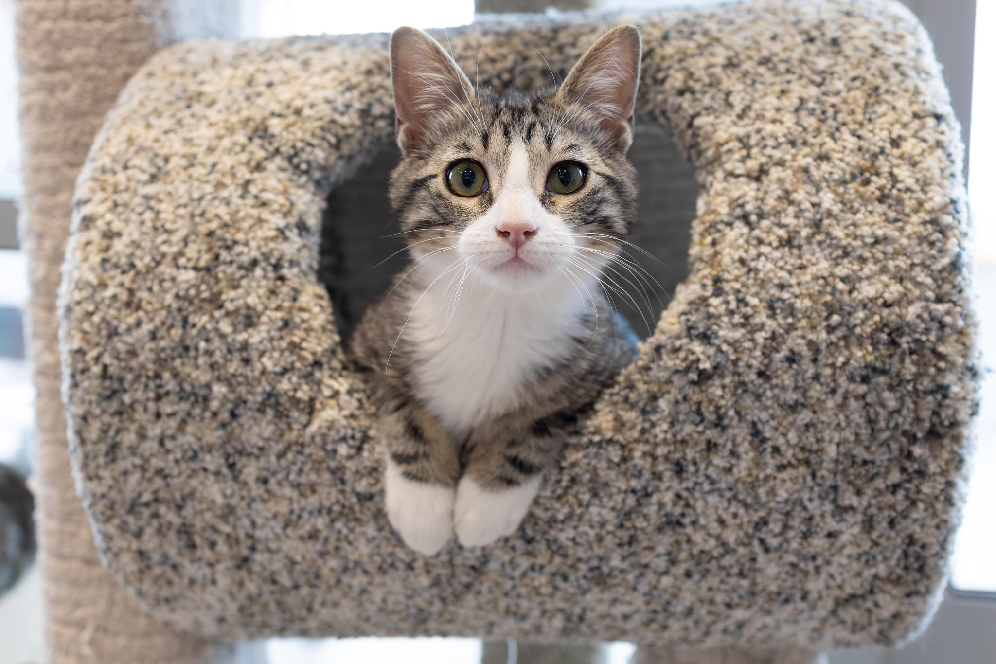 Our little ones have been fully vetted. As you’d expect, they love to play, and they race around like maniacs until they suddenly fall asleep. Nap time lasts just a short while, then play resumes. While adopting more than one kitten isn’t mandatory, it’s awfully nice for these young’uns to have someone their age to play with. Mango would love to be adopted with her brother, Jalapeño!