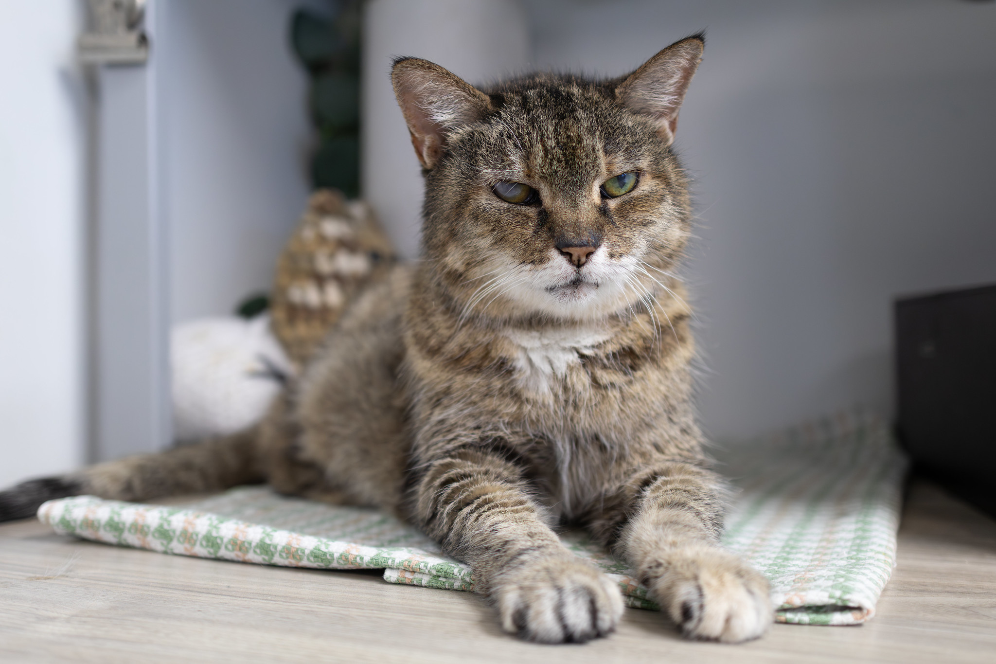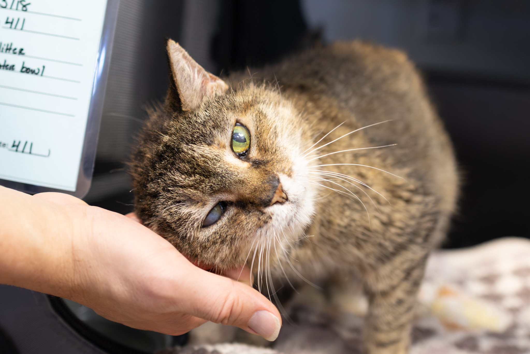 This sweet older kitty is looking for a forever home where she can cherish her golden years. She gets along well with humans and cats alike. Ducky does have chronic kidney disease and requires daily oral medication and a monthly shot to manage her arthritis, so she’ll do best in a home prepared to care for her special needs.