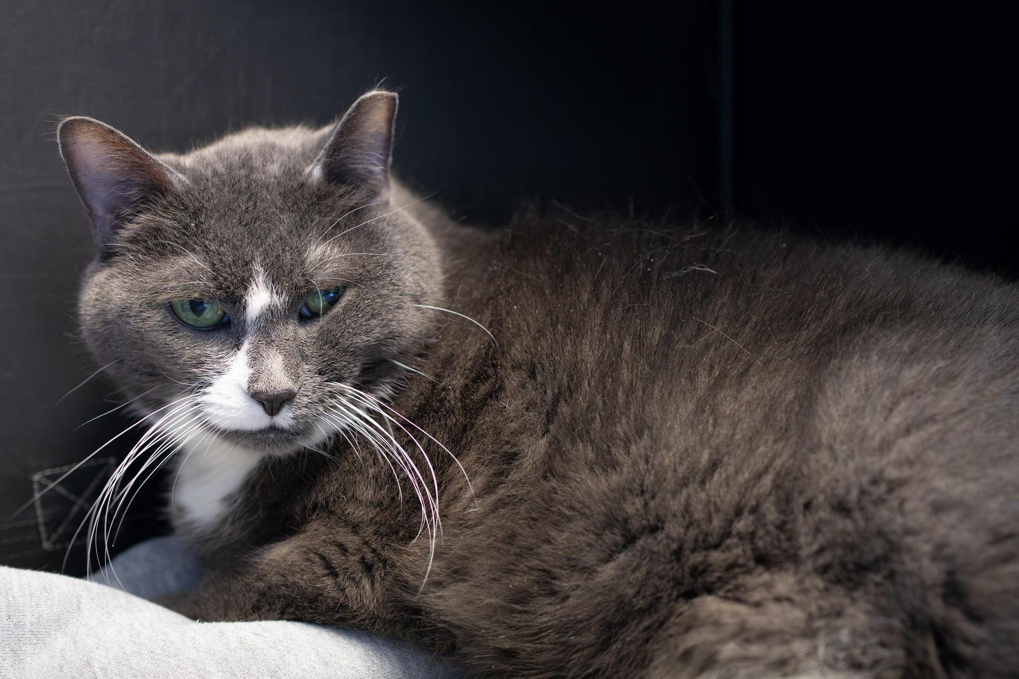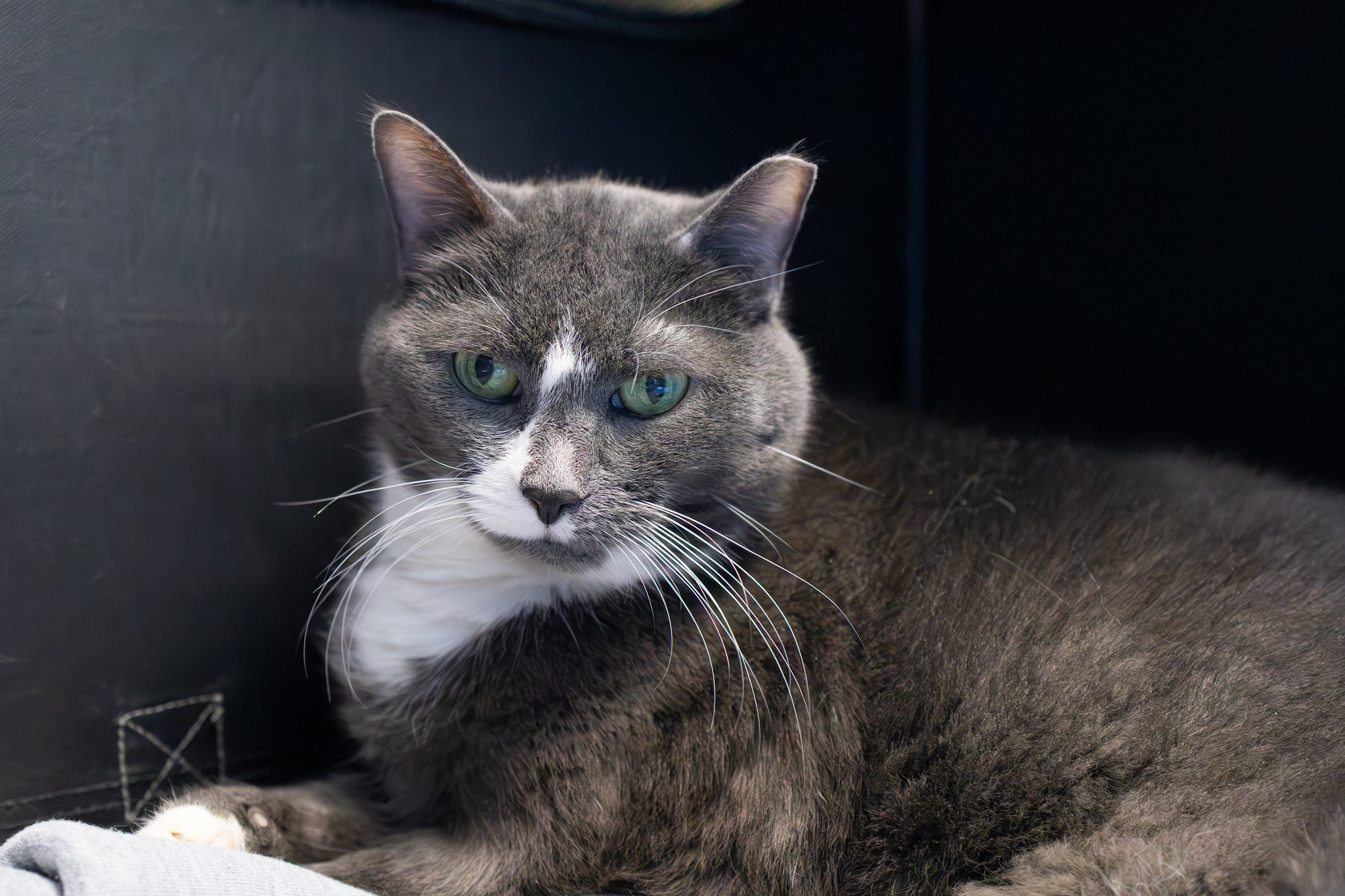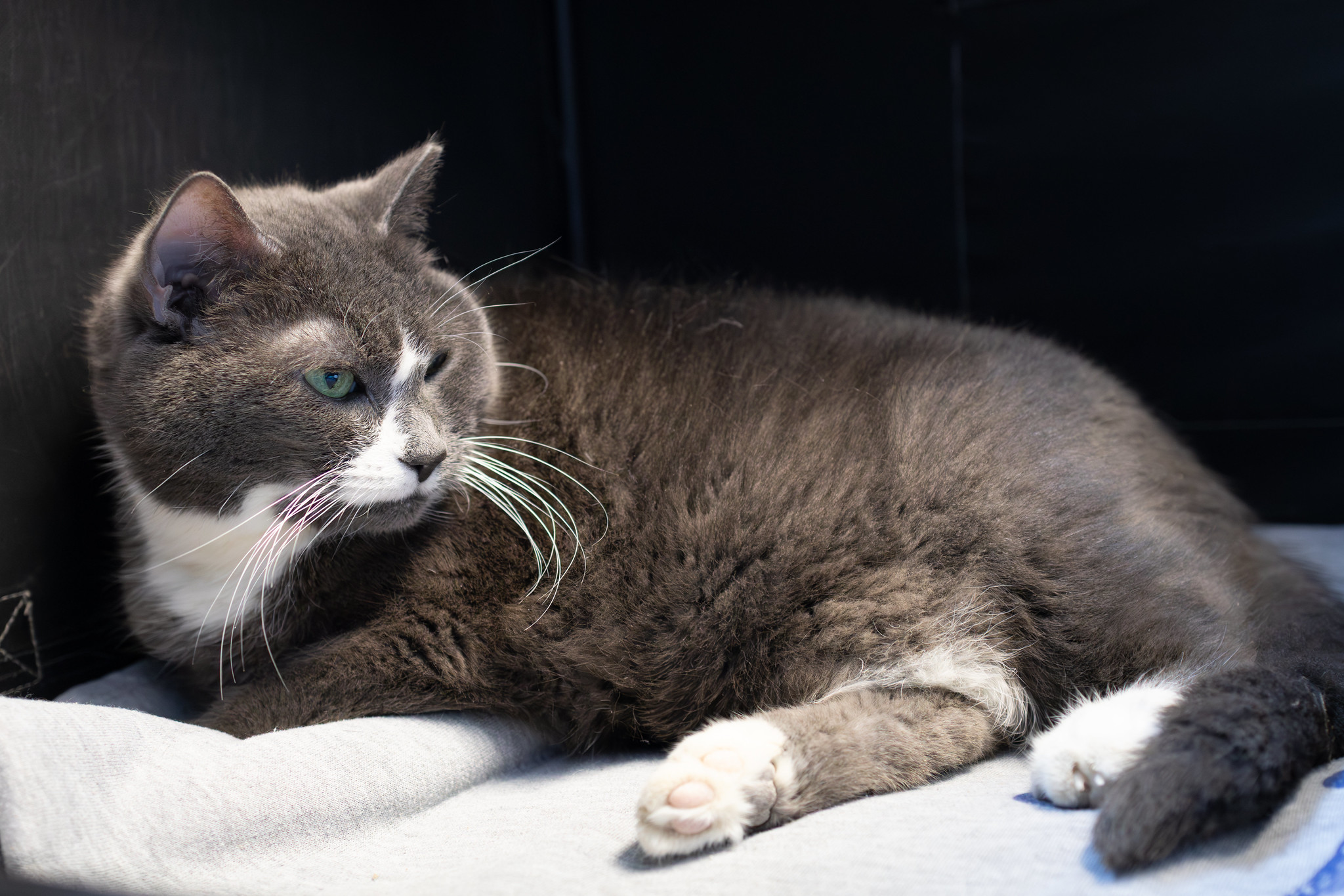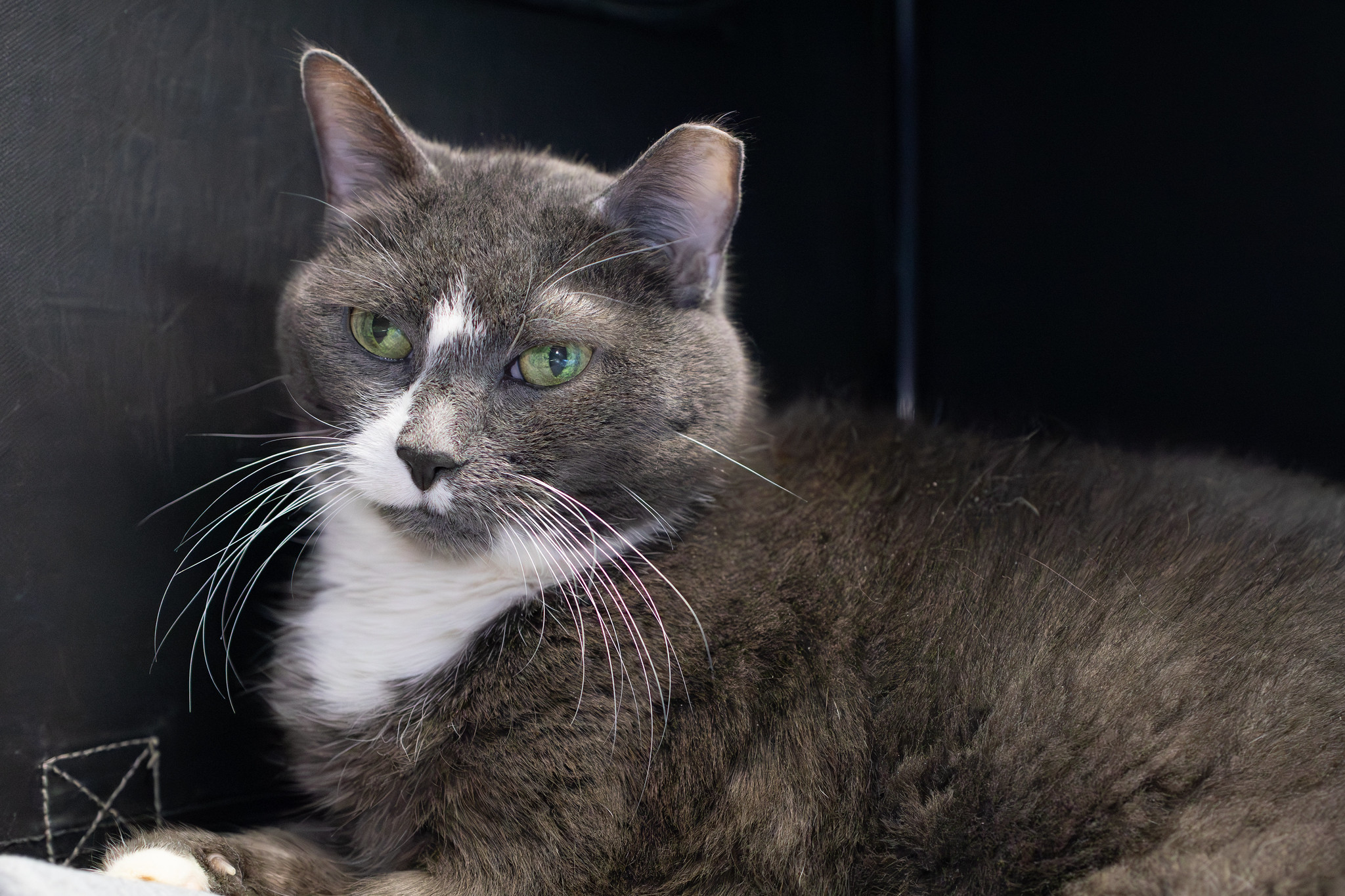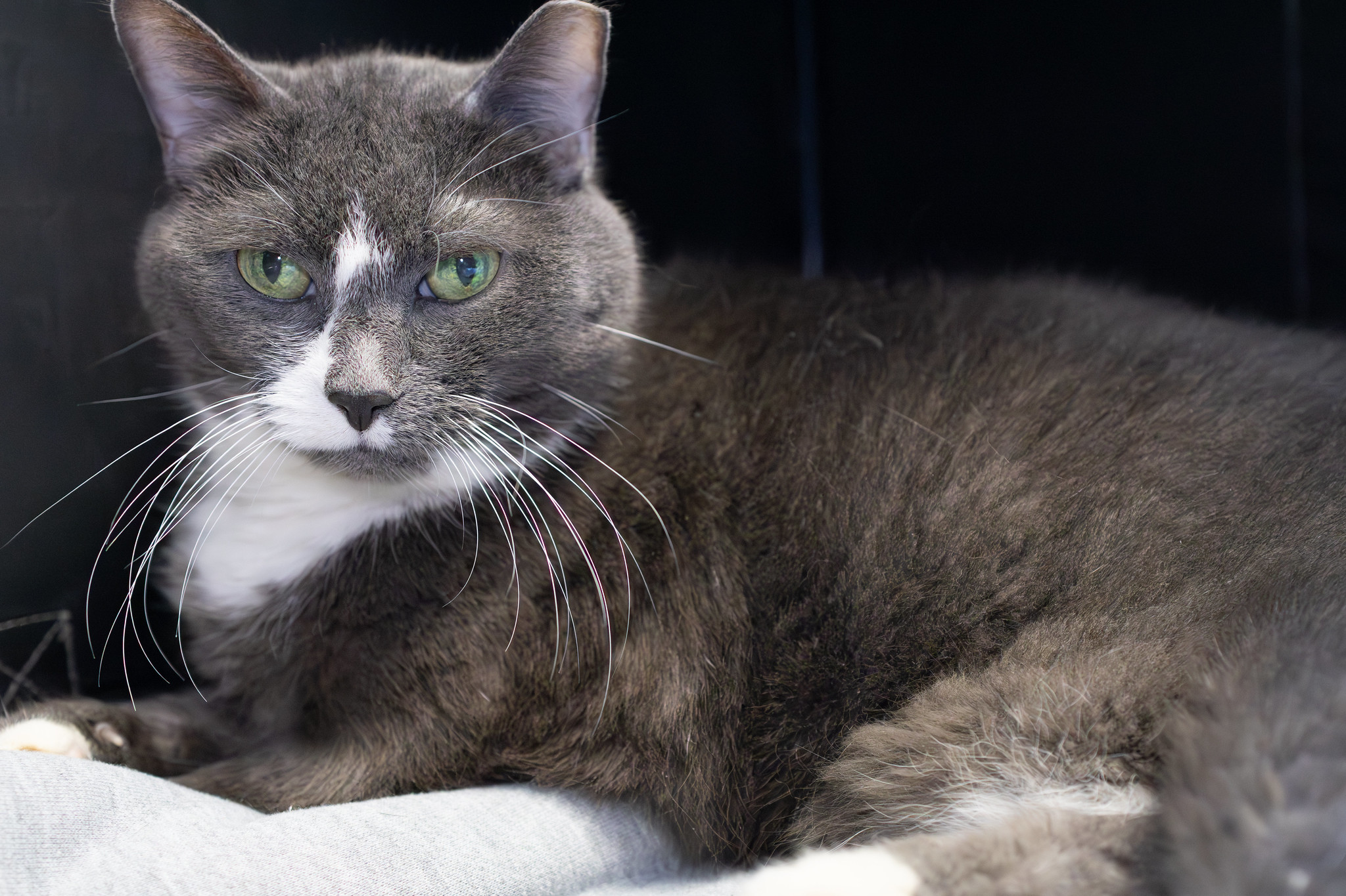 Kamate suffered a tail pull injury at some point in her life that has left her incontinent, and her bladder and bowels need to be expressed twice daily. This may sound intimidating, but the Tabby’s Place team is happy to teach potential adopters how to do this, and it’s very easy to fit into your daily routine!