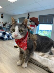 Uni is scary because she knows her worth. Uni is getting scarier all the time, because she feels worthier and worthier the longer she is at Tabby’s Place. Come to think of it, we are in the business of making cats “scary” in this way. Unconditional love makes them strong. When someone is as strong as Uni, she could decide not to need us anymore. Instead, Uni chooses to let us dress her as a little girl.