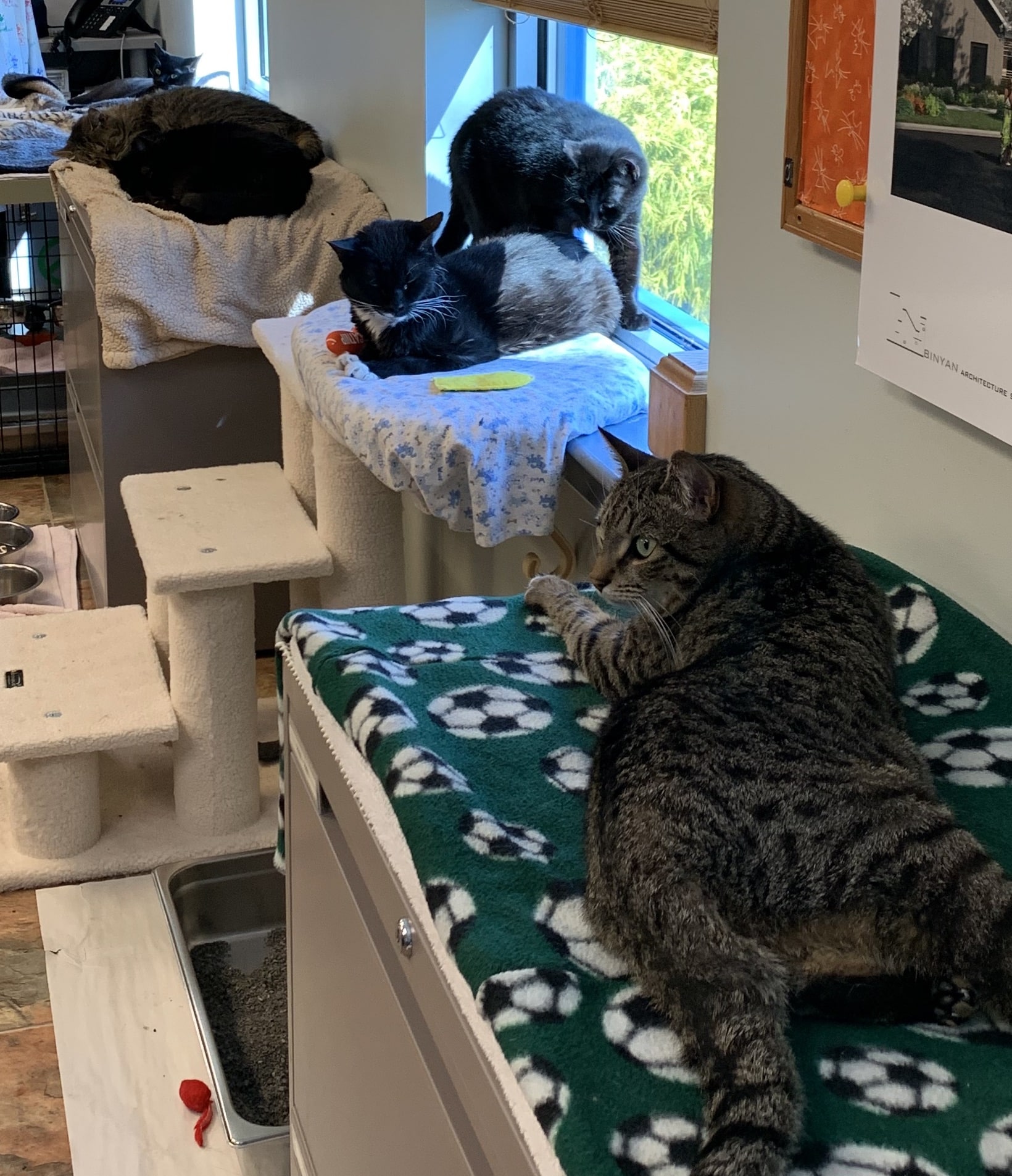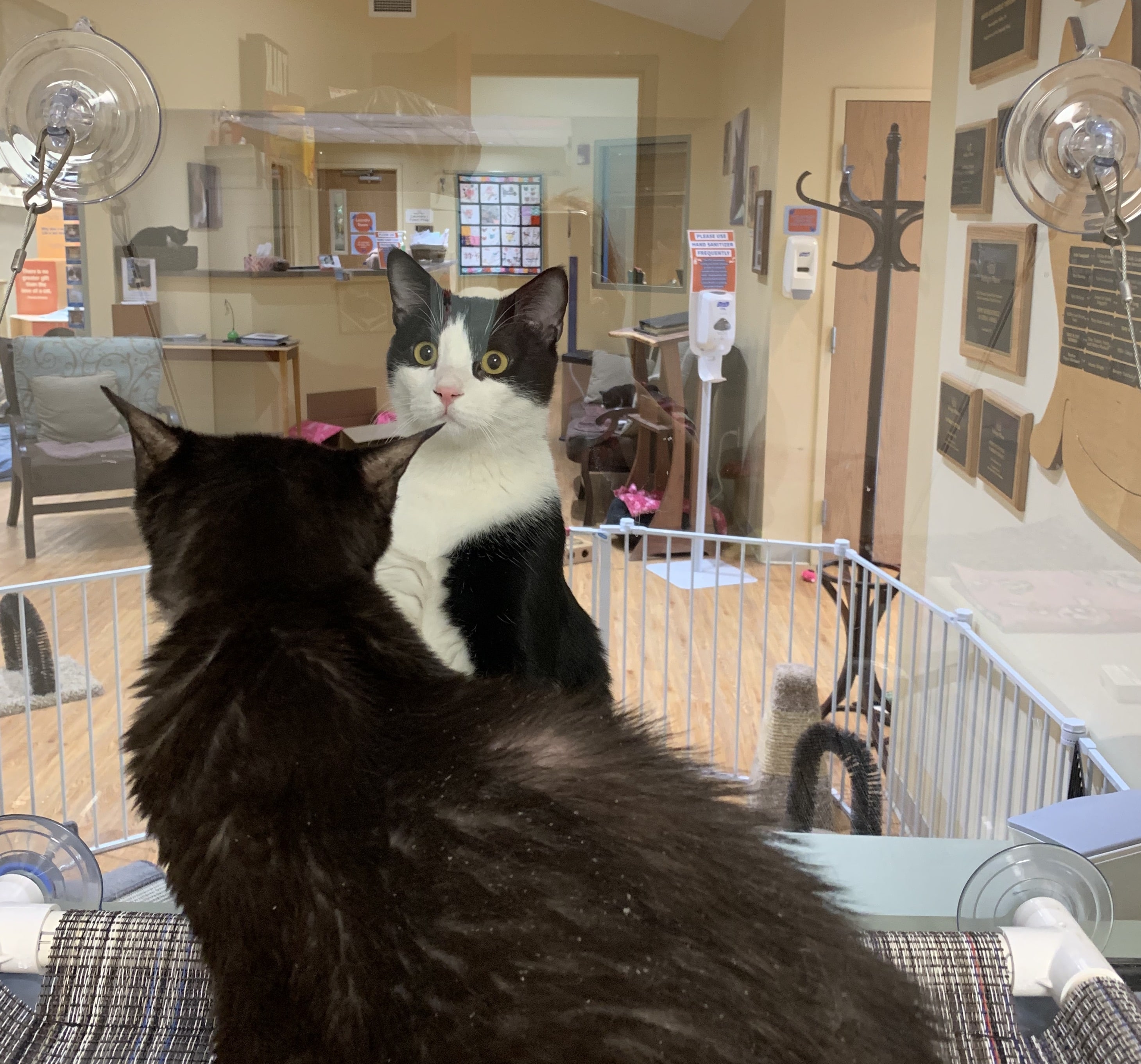 These days physical community is taking on new shapes and sizes from remote locations and socially appropriate distances. We understand how hard separation must be on our volunteers and local supporters that miss in-person time with our kitties. The staff have been working hard to bring emotional well-being to our community in the form of photo and video updates on our volunteer group Facebook page, virtual live tours on our public Facebook page, and even Facetime/Zoom calls with high risk individuals.
