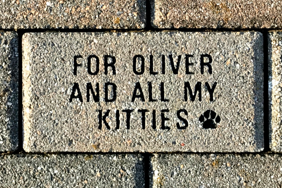 In thanks for your donation of $500 or more, we invite you to inscribe a brick along our walkway to honor your dear one’s memory. We will send you a photo of your engraved brick, and we welcome you to visit Tabby’s Place to view your brick in person.