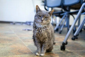 “Silver may not have appreciated the company of the other cats, but she would always come to greet visitors in the Community Room and demand to lick their hands. Some times during rounds, she would insist on being wherever I was in the room, even if that meant we would be walking circles around each other as I tried to medicate the other cats.” – Jae H.