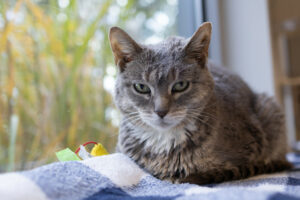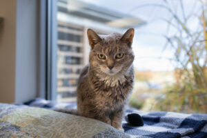 The littlest cat in the Community Room seemed as young and old as New York City, the bustling, breathless place of her birth. She trilled like a kitten, then curled into a tiny grey granny knot for coma-deep sleep. She burbled bawdy opinions the length of a Broadway musical — “cats are abominable, people are adorable”  — then burrowed in the borough of the nearest lap.