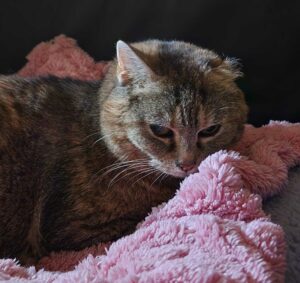 Fergie seemed to love her new home, and quickly chose the biggest bed as her own. When she wasn’t snoozing in her large, comfy bed, she was watching the birds outside of the door, or demanding food. I even caught her playing with toys a few times, throwing them around like she was a kitten again. Fergie was happy and content, and the queen of her own kingdom.