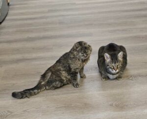First, she got a boyfriend, Hector (another forever foster from Tabby’s Place). Fergie decided Hector was her true love. They would headbutt each other, groom each other, and could often be found just sitting together. After Hector won her over, she started being happy to be around the other cats. She only was affectionate with Hector, but she wasn’t bullying anyone else, so I take that as a win.