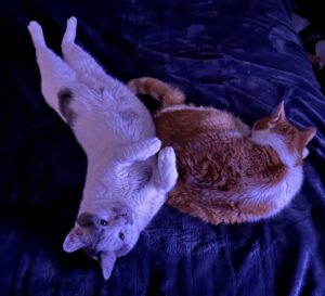 Fellow Tabby’s Place alum Carrot is for cuddling. Fred and Lucy, the younger and more energetic family members, are for playing.