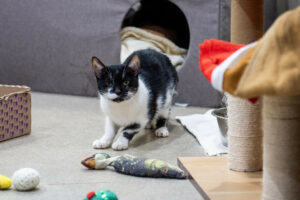 Our crowded periodic table came crashing down in summer 2024. Over sixty of us survived the chaotic chemistry of a sickly cat colony. Overnight, we went from orphans to Tabby’s Place cats.