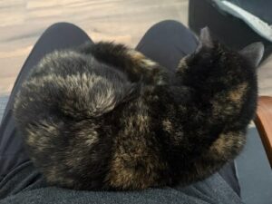 Recently, a shelter in Newark reached out to Tabby’s Place to find sanctuary and support for a bedraggled, small, tortoiseshell kitty named Shelly. Two persons from the shelter were her honor guard and escort for the journey. Being the tour guide on duty, I was honored with the request to provide a tour to these shining individuals once they had witnessed Shelly’s intake. As a bonus, I was able to bear witness too.
