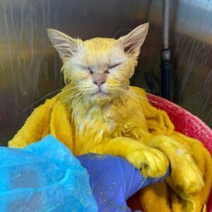 As inconvenient as ringworm may be, it has slithered up to the wrong cats. Lime sulfur is a love language when the goal is getting better. The itch will end, and we will be skritching every chin with bare hands again soon.