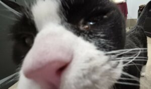 Oh, don’t get me wrong. There are many stand-alone words that have been used to define and describe Smudge. The listicle for this delicious Smudgecicle includes male, sweet, handsome, tuxedo, senior, and big. There is so much more to this charming (Another word!) feline (And another!) than these tags. In fact, the sum total of the words heretofore listed fail to add up to all that is the wonder of Smudge.