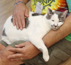 Since Hips has found his forever family, your sponsorship has been transferred to another Advanced Needs cat: beautiful Prescott, who was Hips’ secret (and not so secret) love. Though Prescott found her way to Tabby’s Place with her body badly broken and raging with infection, she was an amazing patient and now dances about in the lobby. Though her injuries left her permanently incontinent, her love of humans is immeasurable. Prepare for Prescott’s wonderful stories each month.