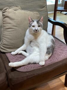 My forever family, who spent their entire lives growing up with cats and caring for community cats, have other kitties I can hang out with and engage in play, since I will be missing my BFF Colonel Peabody, my girlfriend Prescott, Olive Queen of the Lobby, and other kitties at Tabby’s Place.