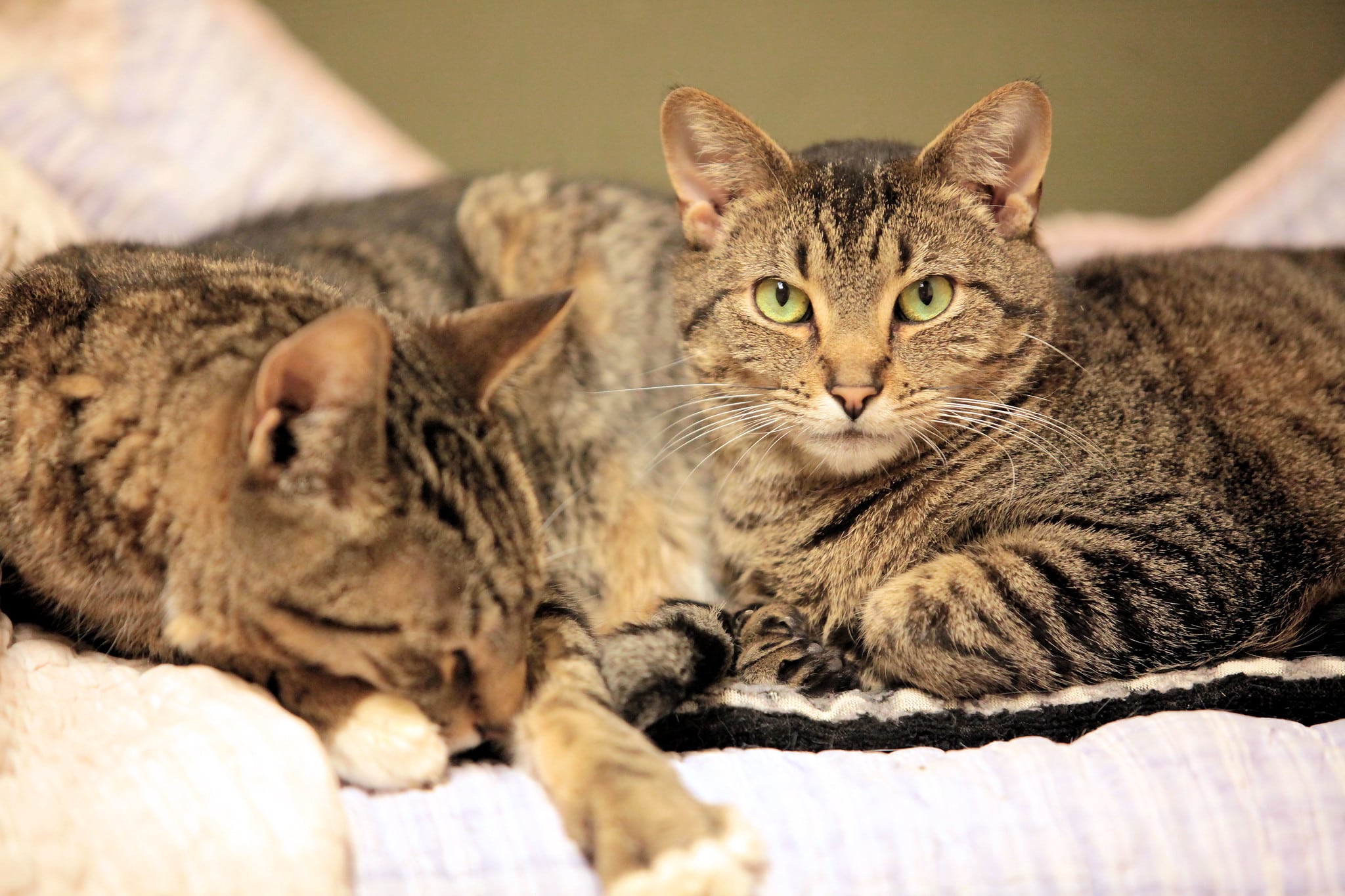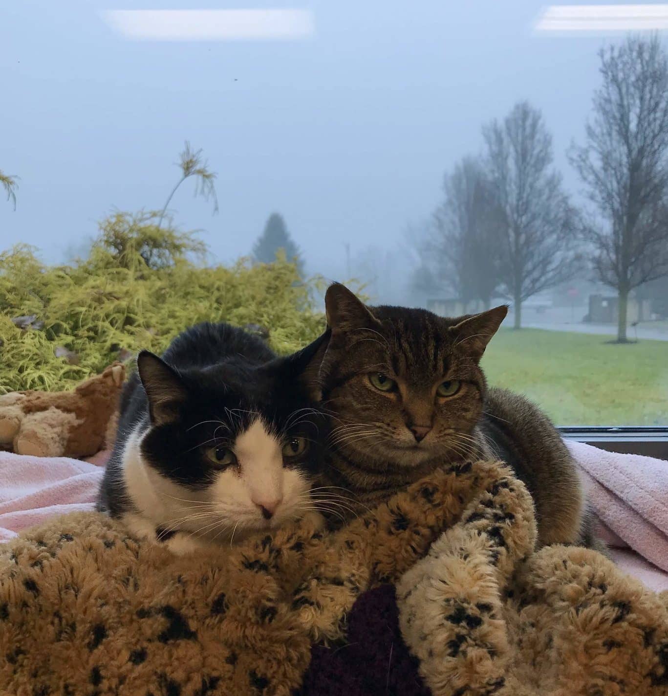 Then, when Sammy moved to the Community Room, she loved sitting in the window box with Pixie. She later formed a fast friendship with Puzzle, and they would sit so close together they often looked like two cats melded together into one. If I paid attention to Sammy, Puzzle would nuzzle my hand. If I went to Puzzle first, Sammy would look offended and demand some petting. It was all good.