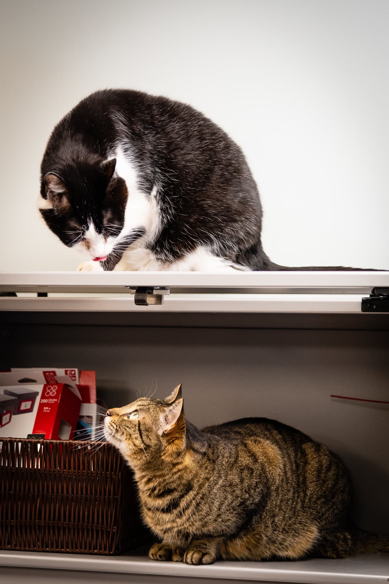 When she moved to a smaller suite, making contact, petting and making much of her (which I loved to do) became easier. I would walk into the suite, and she would be perched on one of the chairs. She’d hop off and hide under a chair. Gradually she didn’t hop off. Gradually, she let me pet her.