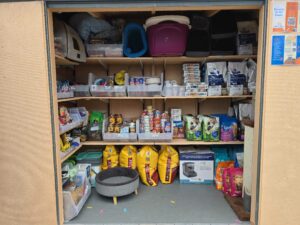 - Tabby’s Place opened Perry’s Pantry – a free community pet food and supply pantry. This pantry was established in honor of a beautiful volunteer who passed away and is named after her beloved cat, Perry. The family joined us for a dedication ceremony earlier this month. This sweet legacy will provide much-needed support to community members and their cats. I’ve always been proud to be a Tabby’s Place cat, but this is next level.