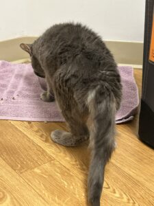 And, Bacon has some big news: he has human office mates! Our Foster Team is now set up in Bacon’s room. This means someone will be working in his room at some point every day, so Tabby’s Place staff can observe Bacon more closely than ever. May this be just the first of many blessings for Bacon heading into the New Year.