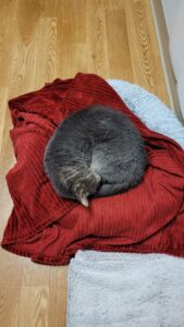 As always, I look forward to my visits with Bacon when I am at Tabby’s Place for my volunteer shift. Sometimes he’s still sleeping in his house, and I have to wait until he’s awake before I go barreling in (quietly).