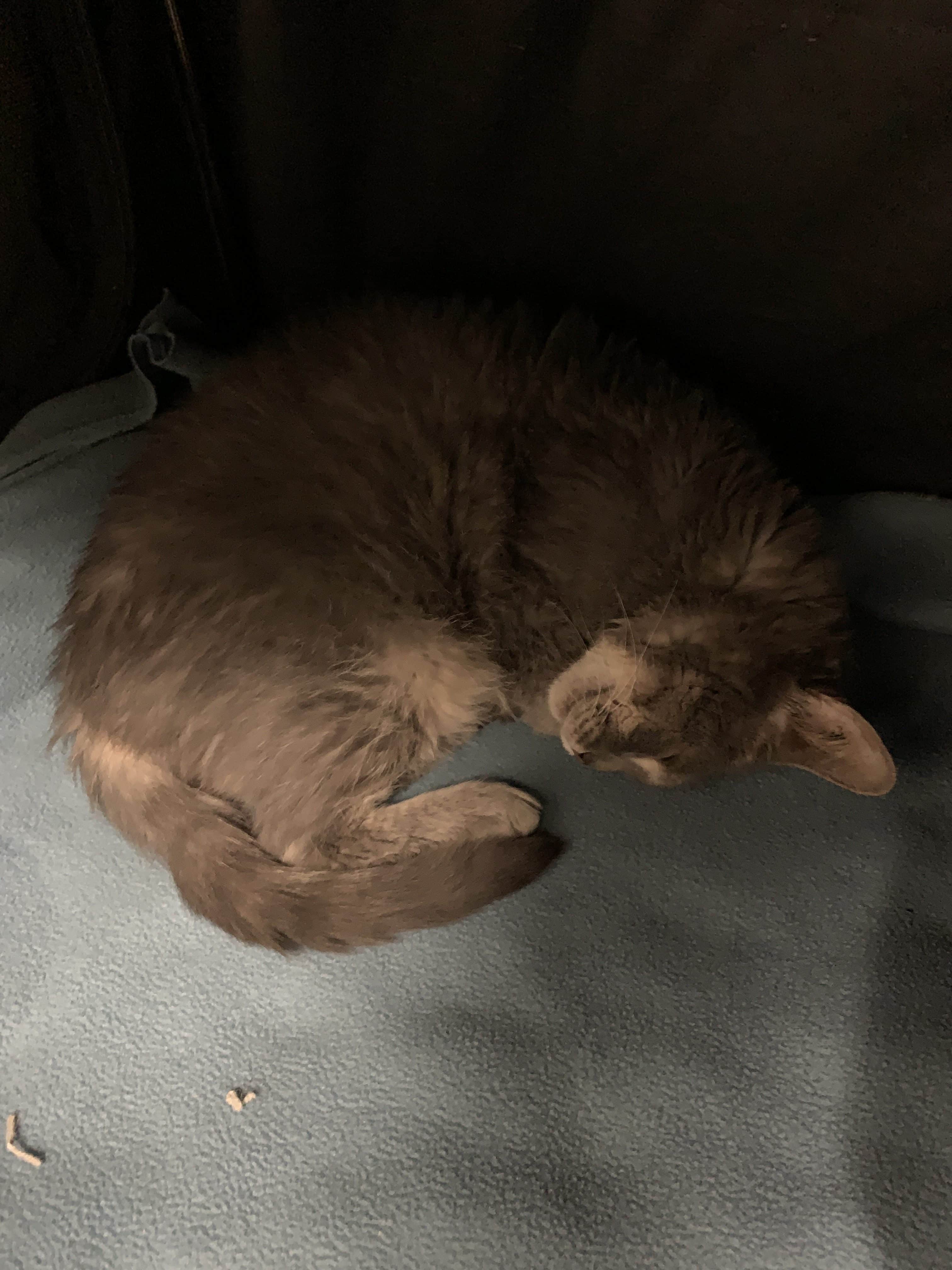 But Bacon is one thing, and that is unpredictable. In the last few days, he has experienced (and staff have observed) a series of much more violent seizures during naps. These leave him out of sorts (lots of growling and hissing at nothing) and exhausted.