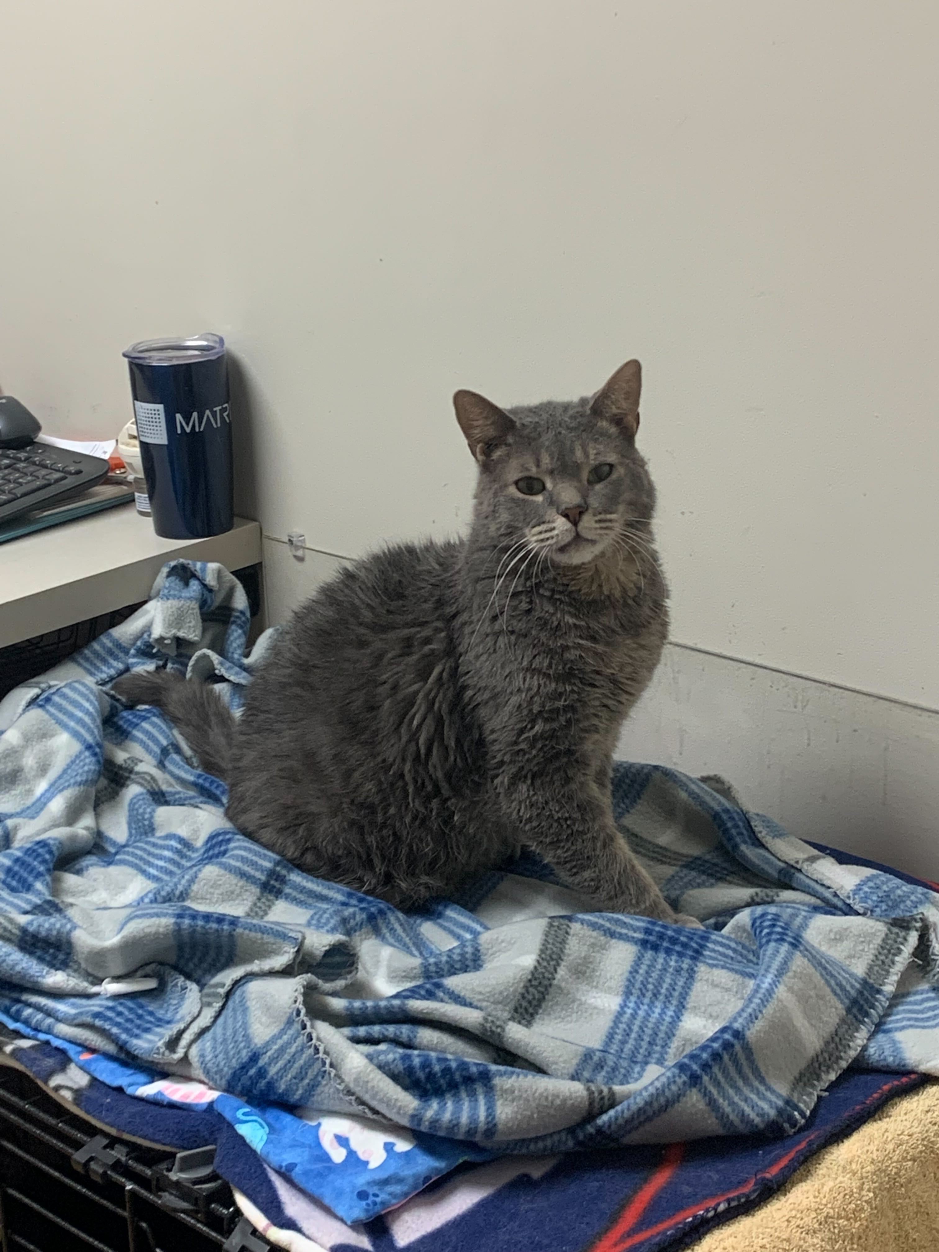 There was a recent afternoon when Bacon was very excited for his dinner and was “hopping” around in anticipation. On another evening he became highly interested in licking the pant legs of the staff member working at the desk. During the licking, he allowed some gentle pets down his back. Bacon is indeed an odd cat.