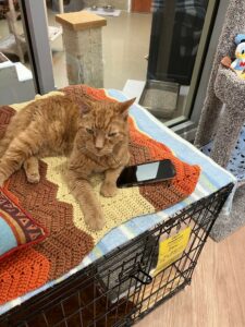 So, I have been having some mobility issues lately.  My front leg has been bothering me and I am limping sometimes.  That is why I spend a lot of time in my cat tree or Larry’s chair at the front desk.  Larry is very kind to let me use his chair as he has to lean over to answer the phone.  But he doesn’t have a bad leg.  So it’s all good.  (and Boobalah and I monitor the front desk when Larry is not here)